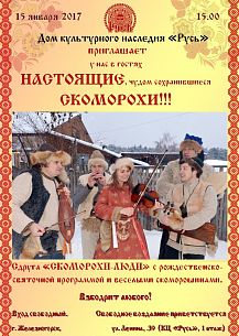 15 января в 15.00 Дом культурного наследия «Русь» приглашает на рождественско-святочную программу Скоморохи-люди».