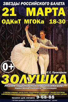 Русский Национальный Классический балет (г.Москва) представляет звезд российского балета в постановке «Золушка» (С.С. Прокофьев). Художественный руководитель Анна Нехлюдова. В спектакле принимают участие артисты Государственного академического Большого театра России и Московского академического музыкального театра им К.С. Станиславского и Вл.И. Немировича-Данченко.