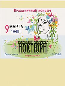 Жителей города приглашают на праздничный концерт вокального ансамбля "Ноктюрн". Билеты в кассе.