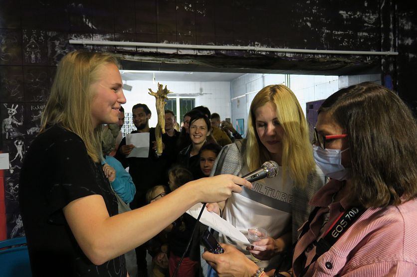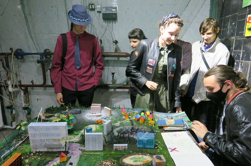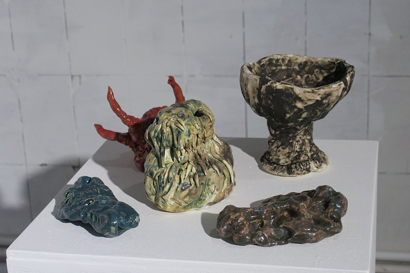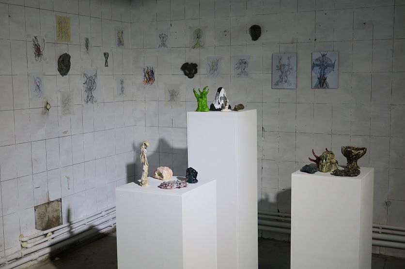 ЖелезногорскНовостиНовости культурыВремя пришло: открылась Вторая Железногорская Биеннале Время пришло: открылась Вторая Железногорская Биеннале Ольга Богатикова 24.08.2020 17:02 Культура 1850 Фото: Ольга Богатикова В Железногорске стартовал фестиваль современного искусства. Его организатором выступил ЖЦСИ «Цикорий». Прошлая Биеннале, состоявшаяся в нашем городе два года назад, стала главным культурным событием 2018 года. Судя по всему, этот фестиваль тоже запомнится железногорцам надолго. И не мудрено, ведь его участниками стали 54 художника из разных регионов России от Новосибирска до Санкт-Петербурга. Вторая Биеннале – это праздник юности и случайности. Юности, потому что ее участники - молодые деятели искусства, случайности – из-за того, что по факту наш фестиваль является самоорганизованным, — отметила куратор мероприятия Александра Дорофеева. В рамках Биеннале открылись сразу несколько выставок. Первая и самая масштабная из них – «Время не придет» - размещена в здании ЖЦСИ «Цикорий». Каждая экспозиция – своего рода манифест. Конкретно эта направлена на принятие человеком самого себя. Ее главные работы принадлежат Ярославу Кудряшову - железногорскому художнику с ограниченными возможностями здоровья, — подчеркнула Александра. Одна из работ Ярослава Кудряшова Фото: Ольга Богатикова По словам куратора, в этот раз экспонатов оказалось так много, что в «Цикории» не осталось ни одного свободного помещения. При этом некоторые комнаты разделили на несколько залов, в каждом из которых скрыта своя собственная история, рассказанная красками, карандашом, деревом и даже пластилином. Фото: Ольга Богатикова Анастасия Маркина родилась в нашем городе, однако более десяти лет назад переехала с родителями в Москву. Раз в год я приезжаю в Железногорск в гости к друзьям и замечаю, как сильно он меняется. Многие объекты, которые в детстве вызывали у меня яркие эмоции, просто перестали существовать. Поэтому я решила создать небольшую инсталляцию, чтобы показать город таким, каким я его помню, — рассказала Анастасия. Свою инсталляцию девушка представила в виде большого макета с многоэтажками, бассейном, магазинами, карьером МГОКа и даже лужами во дворах отдельных домов. Железногорск, каким его видит Анастасия Маркина Фото: Ольга Богатикова Егор Астапченко приехал на Биеннале из Воронежа. Его проект – «Дороги из города» - представляет собой спутниковую карту выезда из Воронежа, написанную красками на баннерной сетке. Со стороны кажется, что схема дорог парит в воздухе и по ней действительно кто-то движется. "Дороги из города" Фото: Ольга Богатикова Помимо картин на выставке есть скульптуры, фотографии, видео и даже музей в музее – особое пространство, в котором находятся вещи вымышленного персонажа. По словам посетителей, экспозиция получилась интересной и очень запоминающейся. Это отметил и почетный гость Железногорской Биеннале художественный руководитель некоммерческого фонда Cosmoscow Александр Буренков. Бытует мнение, что биеннале сейчас переживает серьезный кризис, что подобные художественные экспозиции себя исчерпали. Сегодня я нашел очередное подтверждение тому, что это мнение безосновательно. Арт-группа «Цикорий» сумела организовать интереснейшее мероприятие, которое, без сомнения, оставит свой след в культурной жизни вашег