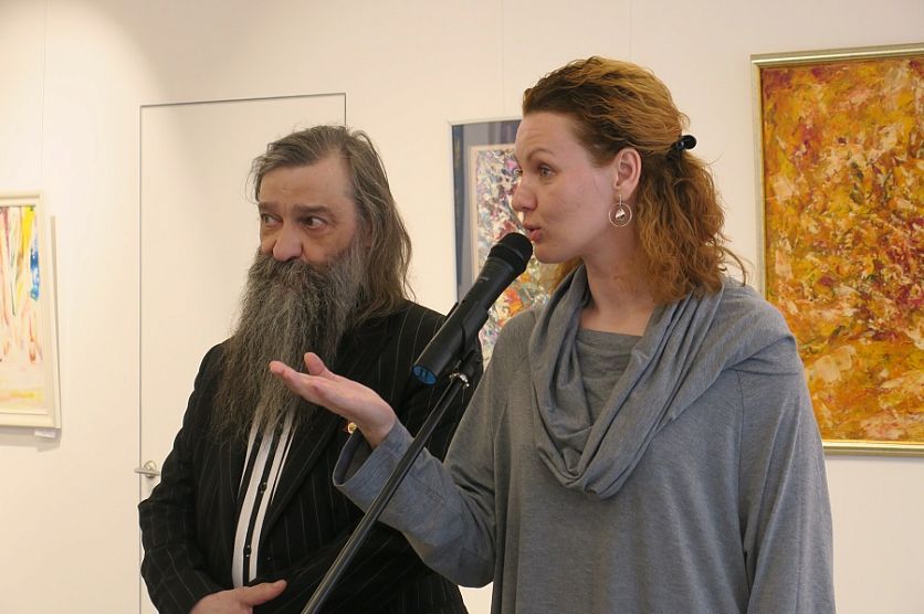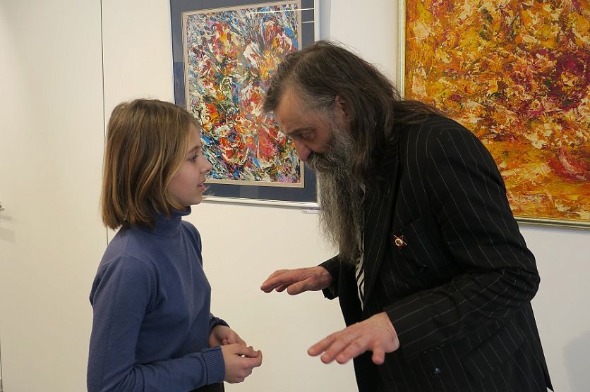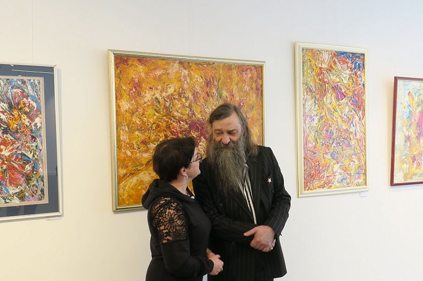 ЖелезногорскНовостиНовости культурыРадин в Железограде! В краеведческом музее открылась выставка известного курского авангардиста Радин в Железограде! В краеведческом музее открылась выставка известного курского авангардиста Ангелина Чернышёва 28.04.2022 16:07 Культура 2205 Фото: Ангелина Чернышёва Зазвучавшая в Железногорске «Музыка цвета» Олега Радина собрала в стенах музея свыше полсотни гостей. В Железногорском краеведческом музее аншлаг. 27 апреля сюда пришли многие поклонники современного художественного абстракционизма. На вернисаж Олега Радина собрались учащиеся детской школы искусств им. Г. Струве, студенты Железногорского художественного колледжа, художники и просто ценители экспрессивной живописи. — Смотря на эти работы, никогда не скажешь, сколько лет автору. Это человек с душой ребёнка. Какие яркие, какие сочные цвета! Его картины побуждают задуматься, пофилософствовать, оставляют глубокий след в душе, – отмечает начальник железногорского управления культуры Татьяна Рогозянская. Из всего многообразия картин, больше всего Татьяне Валерьевне запали в душу две — «1917» и «Солнечный букет»: их Олег Михайлович написал под впечатлением от прочитанных когда-то книг. — Да, настоящий художник не просто рисует – он читает, ищет, мыслит. Очень важно уделять в жизни большое внимание творчеству. Танцуйте, пойте, рисуйте, сочиняйте! Именно искусство заставляет нас быть настоящими людьми – открытыми, честными и чистыми, — обратилась Рогозянская к творческой молодёжи. Фото: Ангелина Чернышёва Открытие выставки проходило в формате блиц-опроса. Это и понятно: про автора картин железногорской публике хотелось знать как можно больше. Художник и коллекционер, краевед и галерист, человек, посвятивший живописи почти полвека... Даже не выставка — сам Радин в этот день стал главным открытием для железногорцев. Солнце внутри «Музыка цвета» включает в себя как картины раннего периода творчества Олега Радина, так и полотна последних лет. Если «ранний Радин» – мрачен и строг, то поздние работы, скорее, можно назвать торжеством цвета и жизни. Отмечают это и коллеги Олега Михайловича. — Большое спасибо, что вы откликнулись и обогатили культурную жизнь Железногорска! Это дорогого стоит. В ваших работах я чувствую не только свободо-, но и жизнелюбие, жизнерадостность. Эта энергетика заряжает! – говорит железногорская художница Дарья Назарова. А приехавший специально на открытие из Курска художник-перформер Сергей Баженов отмечает, что именно в этом зале он впервые увидел всю красоту, широту и мощь картин авангардиста Радина. — Картина как икона: если нет службы, она в состоянии стагнации, а когда начинается служение в храме, – икона начинает раскрываться. И работы Олега Михайловича раскрылись именно в этом музее, – заявил «самый эпатажный художник» Курска. Слева направо: Дарья Назарова, Сергей Баженов, Олег Радин Фото: Ангелина Чернышёва Акрил и джаз Вся жизнь Олега Радина — и есть некая экспрессия со своими взлётами и виражами: от студента политеха — до театрального бутафора, от заведующего художественно-постановочной части драмтеатра — до сапожника... От этого самого сапожника — до основателя собственной художественной галереи «АЯ» — той самой, что открылась в 1990-е, когда вокруг по стране всё лишь только закрывалось. Неизменно на 