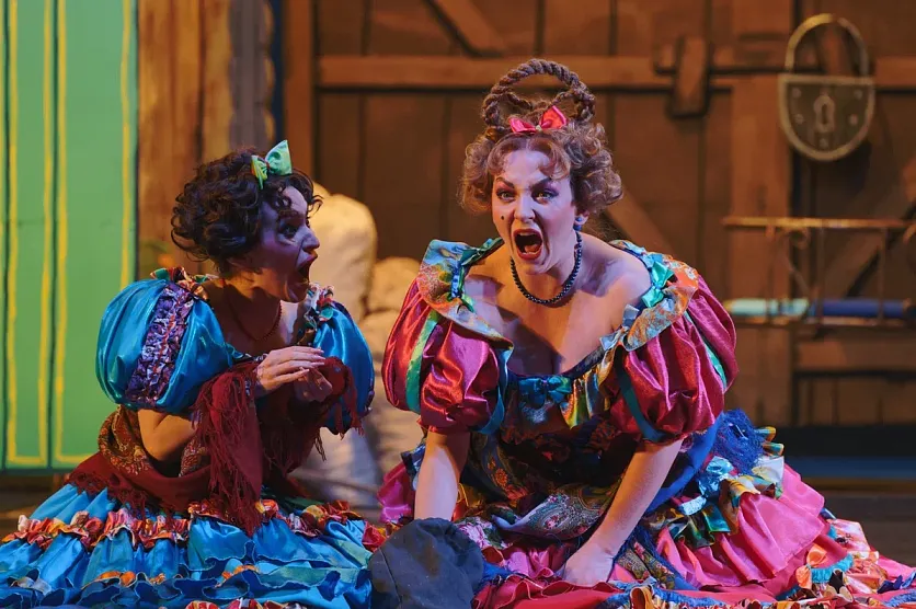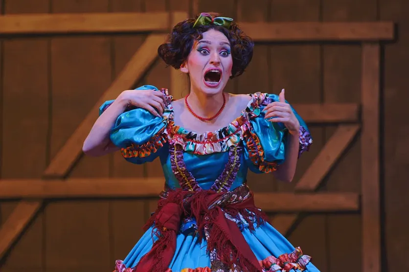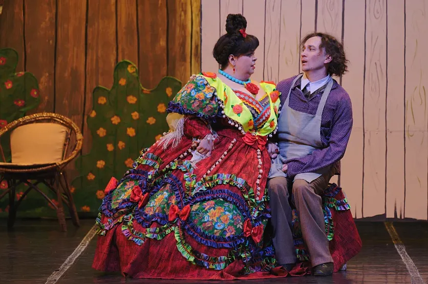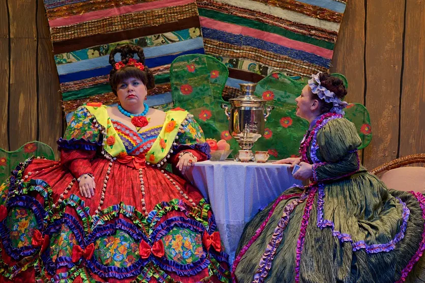 ЖелезногорскНовостиНовости культурыКак «женили» Бальзаминова на железногорской сцене Как «женили» Бальзаминова на железногорской сцене Алёна Мяснянкина 02.04.2023 12:41 Культура 2035 Фото: Владимира Авдеева Увидев в афише «Женитьбу Бальзаминова», наверное, каждый вспомнил кадры из фильма со звёздными российскими актёрами: Георгием Вициным, Нонной Мордюковой, Надеждой Румянцевой, Инной Макаровой. Найти свою сценическую подачу, привнести в характеры героев Александра Островского что-то новое после столь блестящей постановки, конечно, непросто. Оценить, что получилось у современников, всегда интересно. Поэтому, когда благодаря фонду «Искусство, наука и спорт», Бугульминский драматический театр привёз в Железногорск именно этот спектакль, в зале Дворца горняков случился аншлаг. Энергия режиссёра Спектакль «Женитьба Бальзаминова» с успехом идёт во многих театрах страны в разных режиссёрских интерпретациях. «Музыкальные мечтания», поставленные бугульминцами, созданы супружеской парой из Белгорода: режиссёром Владимиром Бородиным и художником-постановщиком Ольгой Бородиной. Владимир Григорьевич, в профессиональном багаже которого было немало и других постановок, ценил музыкальную комедию, как особый жанр – показать легко сложные человеческие взаимоотношения: «От нас энергетика хорошая идёт. Люди же ходят в театр не за красивой картинкой, не за голосами, не за балетом. Они идут обменяться энергетикой, чего нам не хватает». А ещё известный режиссёр говорил, что удивить зрителя можно только талантом. Художник по костюмам и сценограф Ольга Бородина железногорских зрителей однозначно удивила. Платья и декорации не только точно воссоздали мещанский быт, но и вписались в общий характер спектакля, стали сами как бы персонажами. Р-раз, и голубая ткань шторки на окне вдруг становится головным убором Миши Бальзаминова, олицетворяя его «голубую мечту» о богатстве. Или качели, на которых только что сидели сёстры Пеженовы, – подкидывает главного героя в новую высь, к купчихе Домне Белотеловой, отражая факт того, что наша жизнь и есть качели. Фото: Владимира Авдеева Объёмные образы Сыгравший мечтательного Михаила Бальзаминова Роман Никитин моложе Георгия Вицина, которому во время съёмок было уже 46, и он даже в шутку называл фильм «Женитьбой забальзамированного». Но не только возраст, а скорее быстрый темп смены сцен, отменные танцевальные па и прыжки помогли актёру передать энергию 25-летнего персонажа пьесы Островского. Несомненно, не менее Нонны Мордюковой запомнилась железногорцам Анастасия Азорова. В её исполнении Домна Белотелова получилась просто кустодиевской «Купчихой за чаем». А какая экспрессия в голосе! Казалось, воздух в зале Дворца горняков дрожит от такого напора и страсти. Созданию правдоподобного образа помогало и облачение, вес которого около 12 кг! «Пышное платье сшито по классической выкройке. Это эксклюзив, почти музейный экспонат. Более того, у актёров есть правило: в платье нельзя сидеть (если только этого не требует сценарий), поэтому выстоять в нём на протяжении всей постановки – настоящее испытание», – рассказала актриса. Если Лидия Смирнова играла в Акулине, по её словам, «неумную тётку», то у Натальи Бородиной получился образ свахи хитрой, вертящей людьми, как картами, в своих интересах и при этом обаятельн