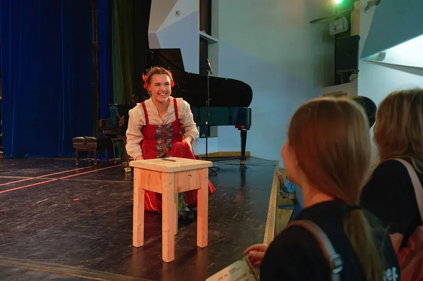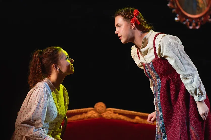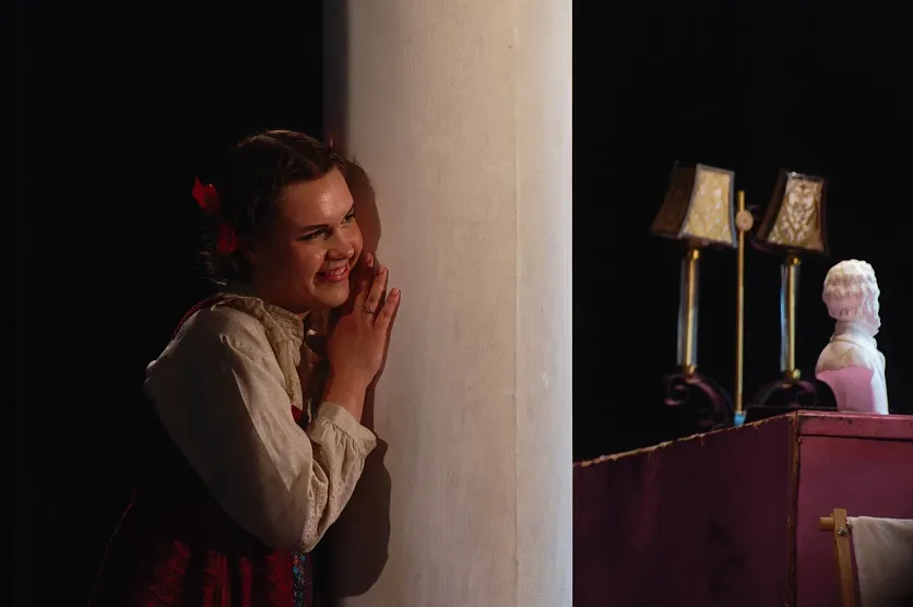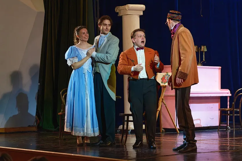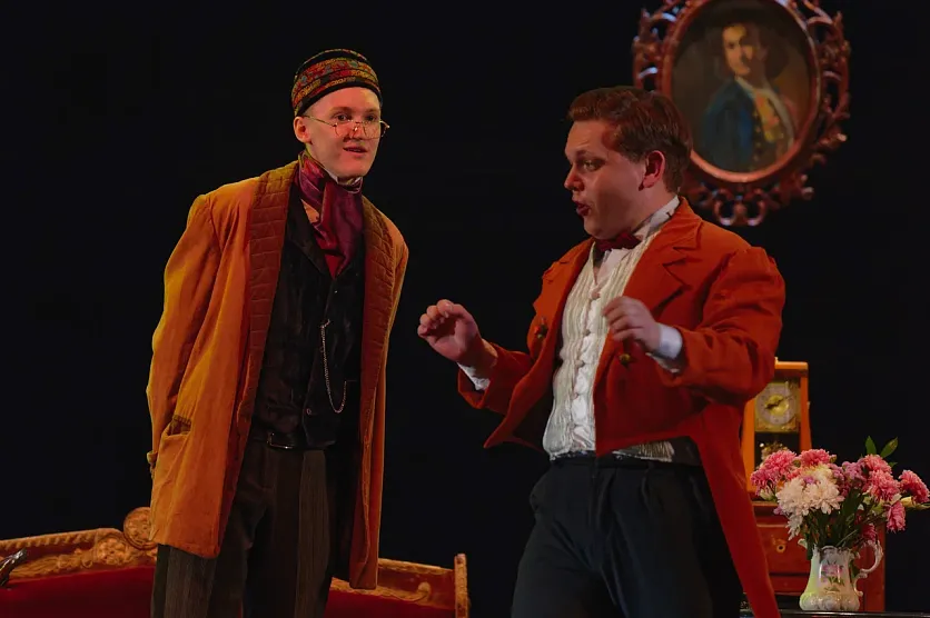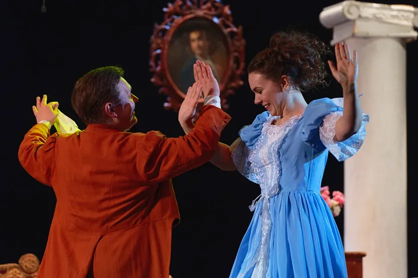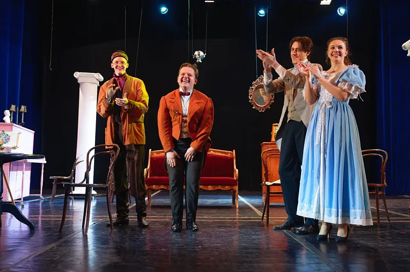 ЖелезногорскНовостиНовости культурыЛегендарный ГИТИС выступил на сцене Железногорска Легендарный ГИТИС выступил на сцене Железногорска Алёна Мяснянкина 20.05.2023 14:43 Культура 1713 Фото: Владимира Авдеева Третьекурсники факультета музыкального театра представили водевиль «Хлопотун, или Дело мастера боится». ГИТИС – легендарное имя в истории театра и театральной педагогики. Увидеть, что привезла столичная труппа в рамках гастролей, организованных в городах, где работают предприятия Металлоинвеста, железногорцы пришли с большим интересом. «Билеты мужу достались на работе, и мы постарались не упустить возможность увидеть талантливую молодёжь. Рады такому открытию, подаренному фондом «Искусство, наука и спорт». Ребята играют не хуже, а по эмоциональности и самоотдаче даже лучше профессионалов сцены», – поделились Татьяна и Андрей Дудар. Фото: Владимира Авдеева Герои из прошлого рядом живут Сюжет водевиля Александр Писарев написал 200 лет назад: 4 ноября 1824 года его впервые показали на сцене московского Малого театра. Но характеры героев понятны и сегодня. Разве каждый из нас не встречал таких, как «хлопотун» Репейкин, который вмешивается во все дела близких, знает, как наилучшим для них образом всё устроить, а в итоге всё портит? «Какой беспорядок! Вижу, что без меня дело не обойдётся. К чему этот цветник?.. Что за вздор! Часы бегут, и никто не поправит: им своя воля – ври что угодно. Без меня ничего не сделают; зато уж и любят меня, да и не мудрено – за всем смотрю один», – хлопочет «хлопотун» в чужом доме, переставляет мебель, цветы и часы, попутно ломая их. Репейкин знает, как надо всё в поместье переделать и перестроить, как вырастить ананасы, приготовить утку, затравить волка. Так же легко и непринуждённо он перестраивает и человеческие судьбы. Одно хорошо, что совершённое действительно из добрых побуждений –добром и заканчивается. Неожиданно для него самого, «хлопотун» устраивает свадьбу собственной невесты с её возлюбленным. Но, как «благородный человек», не огорчается, а напротив рад, что всем угодил. Яркий образ Репейкина создал студент ГИТИСа Александр Булгаков. На вопрос, как удалось ему, молодому и современному, вписаться не только в сюртук 19-го века, но в образ 40-летнего холостяка, отвечает: «За счёт внутренней энергии, которая не угасает до самого конца спектакля. Мы все мокрые из зала выходим всегда, но надеемся, что зрители чувствуют искренность нашей игры». Молодые актёры так вжились в комедийный жанр, что уже и за занавесом, отвечая журналистам, продолжали блистать остроумием. На вопрос, ощущают ли они от спектакля к спектаклю свой рост, высокий и импозантный Кирилл Сикора, стоя рядом с маленьким добряком Александром Булгаковым начинает серьёзно: «Да, конечно, за этот год, от сцены к сцене рост ощутим, – и тут же смеётся. – Мы с ним сначала одного роста были, просто я его обгоняю!» Фото: Владимира Авдеева Жанр – смешной, работа - серьёзная В спектакле актёры не только играют, но поют, танцуют. «Ах, водевиль, водевиль, водевиль – музыка, песни, интриги и танцы», – вспомнились сразу же слова известной песни, намекающие на простоту и лёгкость такого сценического жанра. Однако, чем легче зрительское восприятие, тем значит ответственнее была актёрская работа. Сыграть шутку так, чтобы она была смешной и при этом заставляла глубоко