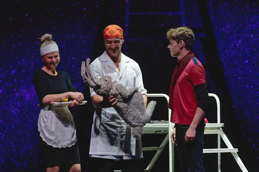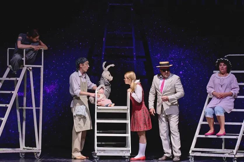 ЖелезногорскНовостиНовости культурыФарфоровый кролик – в «железном» городе. Питерцы показали «Удивительное путешествие кролика Эдварда» Фарфоровый кролик – в «железном» городе. Питерцы показали «Удивительное путешествие кролика Эдварда» Алёна Мяснянкина 01.08.2023 11:28 Культура 5540 Фото: Владимира Авдеева Неужели для того, чтобы научиться любить, нужно быть выкинутым за борт жизни, оказаться на помойке, пережить смерть близкого? И надо ли любить в принципе, если так больно людей терять? Такие взрослые вопросы прозвучали на сцене Дворца горняков в детском спектакле «Удивительное путешествие кролика Эдварда». Гастроли Санкт-Петербургского театра «Суббота» организовал фонд «Искусство, наука и спорт». «Бородавочник» Приключения фарфорового Кролика, главного героя спектакля, начинаются в доме девочки Абилин. Чопорная одежда и манеры её родителей, сюртук, жилеты и шляпки игрушечного персонажа, чай в five o clock, часы на цепочке мысленно отсылают зрителей в Англию, да и сам сюжет словно сошёл из-под пера английских классиков. Например, про медвежонка Паддингтона Майкла Бонда или Белого кролика из Страны чудес Льюиса Кэрролла. Однако автор – современная американская писательница Кейт ДиКамилло, а её сказка написана в 2006 году. «У него были фарфоровые лапки, фарфоровая голова, фарфоровое тело и даже фарфоровый нос. Чтобы он мог сгибать фарфоровые локотки и фарфоровые коленки, суставы на лапках соединялись проволокой», – так начинает она рассказ о своём герое, и становится понятно, что в этом фарфоровом теле сердце не предусмотрено. Невозможно расшевелить то, чего нет. И даже рассказ бабушки Пелегрины о принцессе, которая превратилась в жуткое животное-бородавочника за то, что никого не любила, не оставляет в голове Кролика никаких размышлений. Фото: Владимира Авдеева Немало «бородавочников» так и ходит по белу свету нерасколдованными, но жизнь всё равно пытается их исправить, предлагая испытания. Достались они и Эдварду. Выкинутый за борт корабля злым мальчишкой-юнгой, он дни, недели, месяцы лежал на дне – было время подумать и… начать тосковать об Абелин, которая так его любила. Однако ему повезло: рыбак Лоренс вытащил игрушку, а его жена Нелли сшила новый наряд. Так переходил Кролик из рук в руки, побывав и на городской свалке, и в путешествиях с бродягами, и в качестве чучела на огороде, и в доме больной девочки Сары-Рут, а после её смерти стал даже «танцовщиком» для подаяний. Его уже давно не звали горделивым именем Эдвард: был он Малоуном, Бубенчиком и даже… Сюзанной. В конечном итоге его разбили на множество осколков, но снова склеили и выставили в витрине кукольного магазина. Фото: Владимира Авдеева «Я научился любить. И это ужасно» Можно починить тело, но склеишь ли душу? Её неожиданно открыл в себе Кролик, пройдя сквозь столько испытаний, привязываясь к новым хорошим людям и снова теряя их. «Я научился любить. И это ужасно. Любовь разбила мне сердце», – разговаривает он с невидимой «Пелегриной». «Я покончил с любовью. Я с этим делом покончил. Это слишком больно», – говорит он и соседке-кукле на магазинной полке. «Ужасно! – не соглашается та. – Как можно жить с подобными мыслями? В такой жизни нет никакого смысла. Внутри должно жить ожидание, предвкушение. Надо жить надеждой, купаться в ней. И думать о том, кто полюбит тебя и кого ты пол