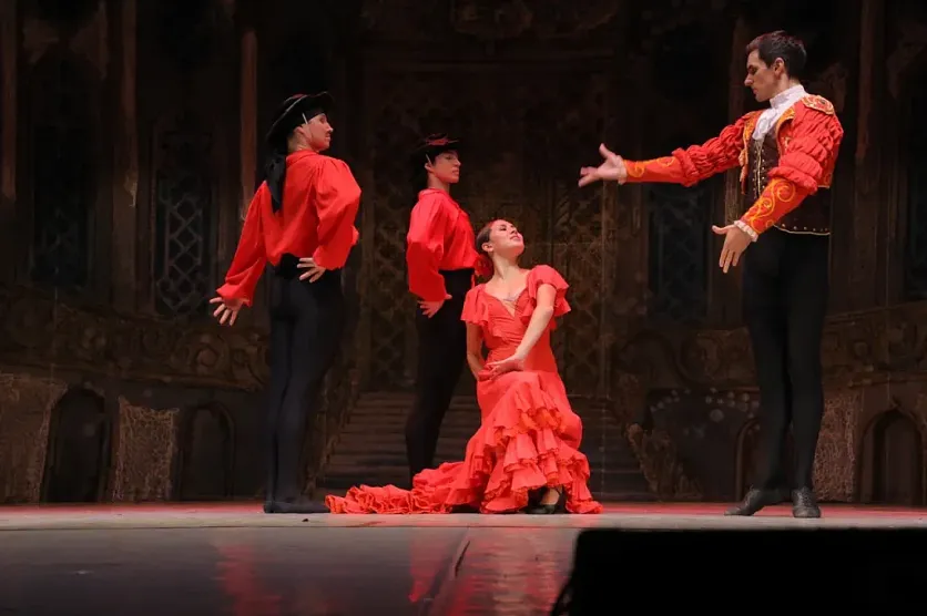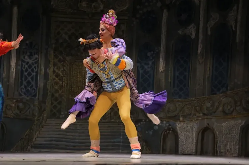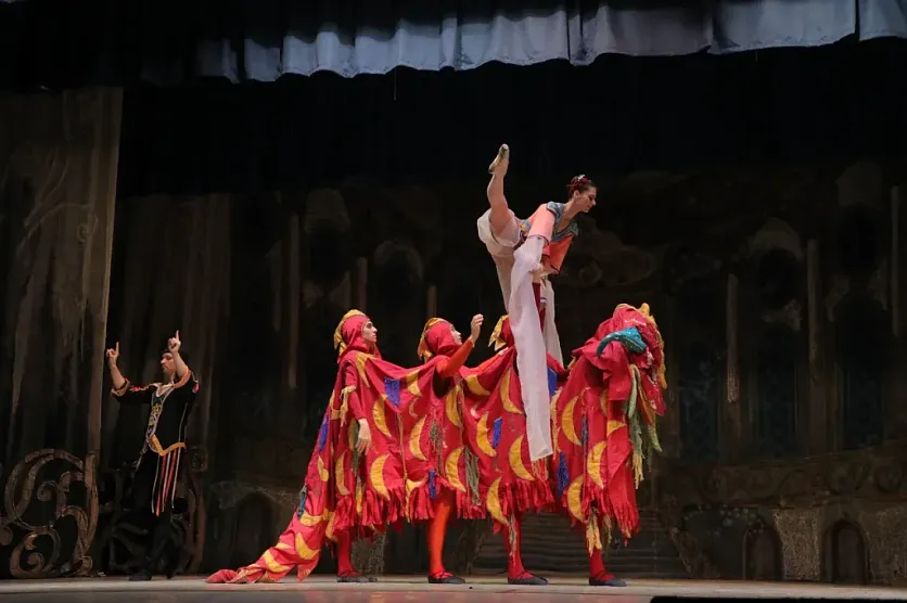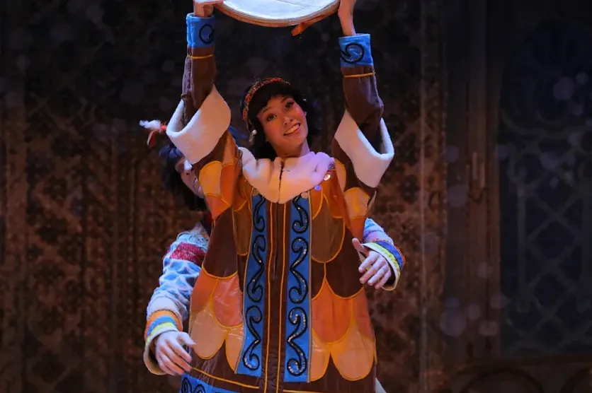 ЖелезногорскНовостиНовости культурыЖелезногорцы увидели необычную «Золушку» с гномами и драконом Железногорцы увидели необычную «Золушку» с гномами и драконом Алёна Мяснянкина 23.10.2024 08:20 Культура 4905 Фото: Валерия Воронова Балет, пантомима, акробатика и гениальная музыка Сергея Прокофьева сошлись в этот вечер на сцене Дворца горняков. Вечную историю о торжестве добра в оригинальной постановке показал коллектив театра Касаткиной и Василёва. Кокетливая мачеха и романтический принц Занавес поднимается, и зритель оказывается вовлечён в вихрь танца и эмоциональных переживаний. Любимая всем с детства Золушка в доме своего отца подвергается всяческим нападкам мачехи и её дочерей. Однако, как ни странно, отрицательные персонажи в этой интерпретации вызывают скорее смех, чем досаду. Мачеха в исполнении Софьи Орловой – кокетка. То прикинется больной, то завлечёт мужа ласками – и тот покорно выполняет все её пожелания. Актриса рассказала, что, работая над ролью, пересматривала советский фильм с Фаиной Раневской и восхищалась её талантом сыграть многогранность характера, одновременно и взбалмошного, и вредного, и забавного: «Хочу и я показать, что моя героиня не злая, она просто заботится о своих детях. Она молодая и харизматичная – всё-таки у неё было целых два мужа, и на балу ею интересуются принцы» Принцев в этом сюжете неожиданно оказалось четверо. Кроме главного, перед Золушкой танцуют экспрессивный испанец, по-кошачьи мягко двигающийся китаец и немножко угловатый, но мощный скандинав. Последний вышел на сцену с палками для скандинавской ходьбы, чем вызвал улыбки зрителей. Настоящий принц – герой романтический. Влюбившись с первого взгляда, он способен обойти весь свет в поисках сбежавшей незнакомки. В Гаджимураде Дааеве режиссёры рассмотрели именно такую внешность и темперамент. В других спектаклях театра мужчина исполняет тоже благородных персонажей, к примеру, Ромео и заколдованного принца Щелкунчика. Восемь лет Красноярского хореографического колледжа и обучение в академии имени А. Я. Вагановой выточили в нём высокое мастерство и артистизм. И это важно в балете, где нужно без слов рассказать о любви. «Все эмоции мы передаём за счёт пластики тела, жестов, выражений лица. Плюс красивые вращения, неординарная техника, полёт, выразительность дуэтного танца – всё это передаёт замысел без слов», – говорит актёр. Основные актёры в этой постановке имеют два состава и чередуются, если спектакли идут подряд. В Железногорске Гаджимурад Дааев принца не играл, но его можно было увидеть среди придворных, гномов и в партии дракона. Последний сказочный персонаж, которому помогли «танцевать» сразу три балетных актёра, появился в момент скитаний принца по странам мира в поисках Золушки. Восточная принцесса, въехавшая на сцену на драконе, показала зрителям поистине цирковые акробатические па. Вообще внимание зала не отвлекалось от сцены ни на минуту. Дети особенно ярко реагировали на появление ростовых мышей, пляшущих гномов. А когда шут замахнулся топором, чтобы укоротить ногу мачехи, и та влезла в туфельку, в зале раздался вдох напряжения. За лёгкостью и красотой игры скрываются многочасовые тренировки. Актёры рассказали, что ежедневно с 11:00 до 12:00 они проводят уроки классики, а потом до 18:00 репетируют свои партии и спектакли в це