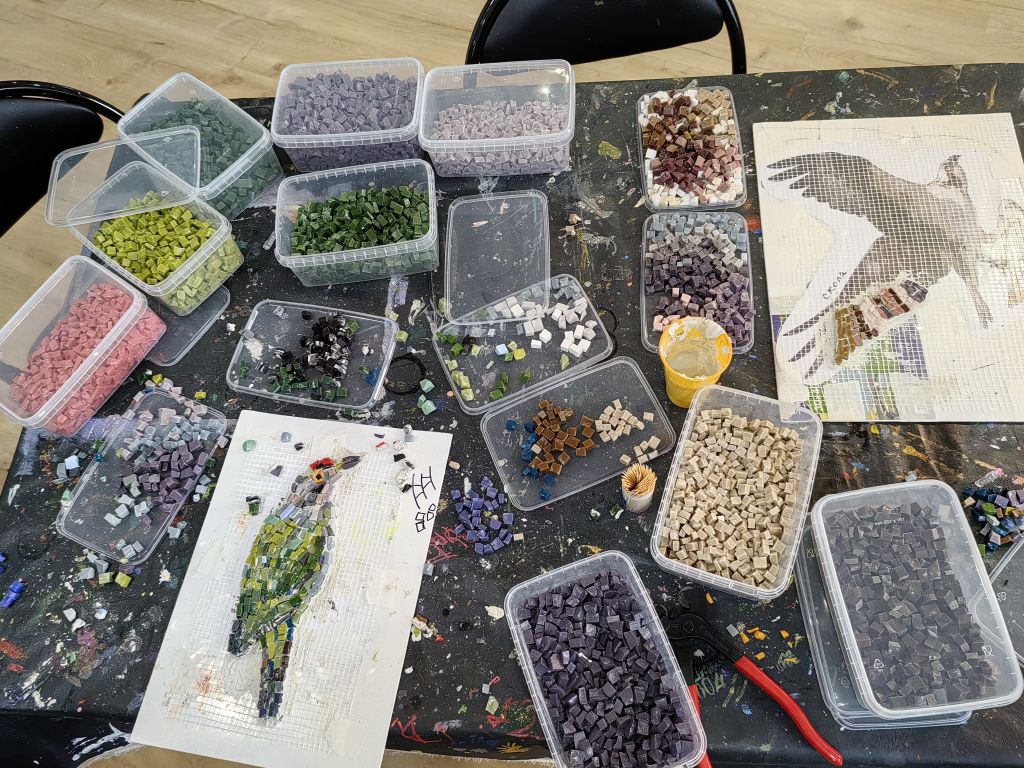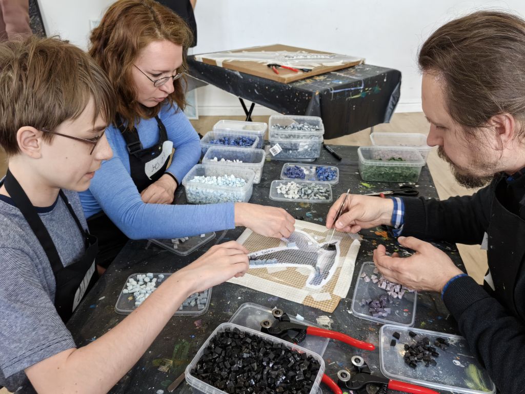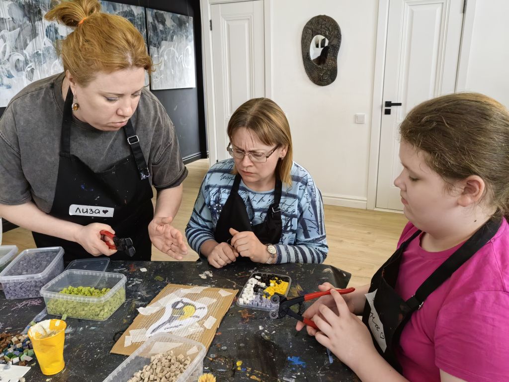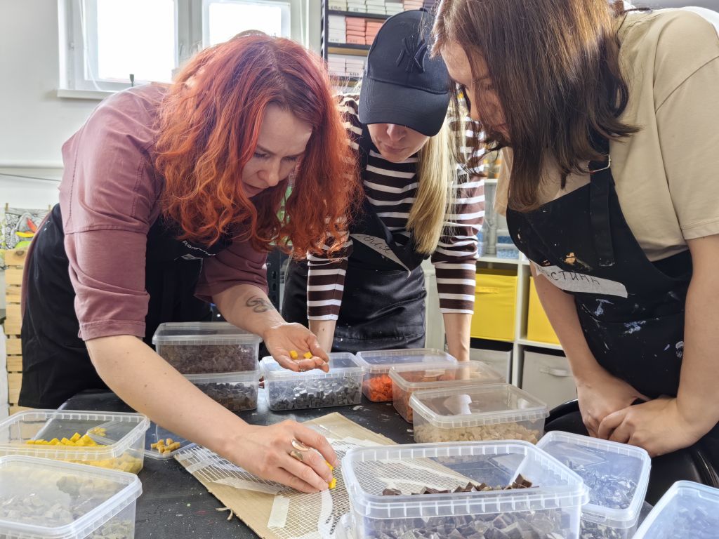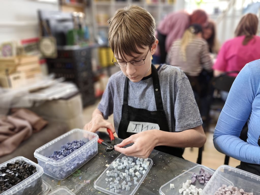ЖелезногорскНовостиНовости культурыДесять горячих дней – и в Железногорске будет мозаика Десять горячих дней – и в Железногорске будет мозаика Алёна Мяснянкина 04.05.2025 13:25 Культура 668 Фото: Алёны Мяснянкиной 1 мая начались мастер-классы соучастия горожан в грантовом проекте «У нас будет мозаика» художницы Дарьи Назаровой. 11 мая в 12:00 состоится торжественное открытие панно, которое украсит Музей природы Железногорска на ул. Ленина, 56. Участники Тимофей Ситников внимательными и выверенными движениями ограняет каждый камешек смальты. 14-летний парень не новичок в творчестве, создаёт графические эскизы, но этот процесс для него нов и необычен. Фото: Алёны Мяснянкиной «Надо всё сделать не тяп-ляп, а подобрать по форме и цвету. Это похоже на сборку пазлов, но каждый фрагмент уникален и изготовлен самостоятельно», – говорит Тимофей. Свою птицу счастья Александр Назаров уже поймал, поэтому ему легко отразить её на панно. Он генератор идей, помощник и соучастник творчества, разделяющий желание супруги Дарьи наполнить Железногорск позитивом. Дарья и Александр Назаровы Фото: Алёны Мяснянкиной Рассказывает, что видел в Италии применение мозаики даже для табличек с номерами домов, и это очень красиво. Не исключает, что такая мозаика появится со временем и на доме Ленина, 65, где расположено творческое сообщество «На высоте». В арт-мастерскую для изготовления фрагментов будущей общей картины записалось около 130 человек. И все праздничные майские дни здесь будет кипеть работа. Ещё 30 железногорцев откликнулись на призыв помочь колоть смальту и наполнили многочисленные коробочки заготовками разных цветов. Фото: Алёны Мяснянкиной Процесс В ходе подготовки к проекту в помещении появились специальная столешница и оборудование: смальтокол, наковальни, дисковые кусачки, молотки. Участники надевают рабочие фартуки и приступают к процессу. На подложки уже нанесены рисунки птиц, насекомых, земноводных, характерных для курского края. Для удобства прорисована сетка, помогающая сориентироваться в подборе элементов. «Чем аккуратнее вы будете набирать, стараться подогнать одну часть к другой, тем ярче будет результат. Высоту нужно стараться выдерживать примерно в 5 мм, чтобы низкие кусочки потом не отвалились. Но некоторая разноуровневость возможна, она минимизируется цементной основой», – переходят от стола к столу, поясняют и помогают приглашённые мозаичисты. Фото: Алёны Мяснянкиной Мастера Художница из Новосибирска Аделаида Рош уже имеет опыт партиципаторного искусства, то есть создания арт-объектов с вовлечением в работу жителей. В её родном городе вместе с тремястами помощниками она создала панно «Птицы тоже люди». «Идея как раз в том, что горожане сами создают что-то значимое, красивое. Миссия украшения ложится на тех, кто здесь живёт. И потом люди фотографируются, выкладывают снимки в соцсетях, выделяя свою птичку: «Это я сделал!». Это очень вдохновляет», – рассказала мастер. В паре с петербурженкой Елизаветой Заболотской, вторым мастером железногорского проекта, они уже работали. В Баргузинском районе на Байкале делали инсталляции для арт-парка «Лес». «Там была мангальная зона, которую организаторы туристического места решили облагородить. Мы сделали мозаичных «рыб» на сетке для запекания, «яичницу» в чугунной сковородке, «стейк», «б