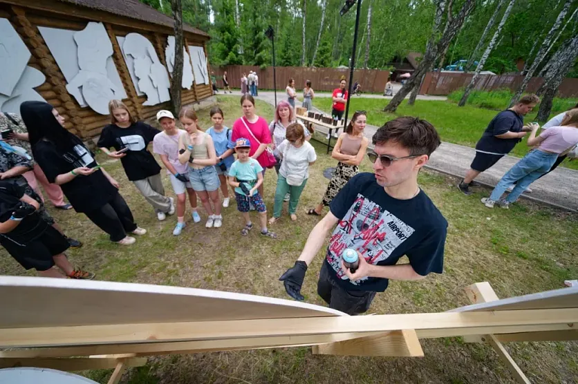 ЖелезногорскНовостиНовости культурыЖелезногорское притяжение современного искусства состоялось Железногорское притяжение современного искусства состоялось Алёна Мяснянкина 02.06.2025 14:12 Культура 2012 Фото: Владимира Авдеева Магнитную силу творчества исследовал арт-фестиваль «Трансформация», прошедший в Железногорске 31 мая. Тема 2025 года – «Притяжение». И площадки проекта «примагнитили» людей из самых разных сфер: художников и музыкантов, директоров производств и предпринимателей, депутатов и волонтёров, участников и зрителей. При этом они легко трансформировались из одного образа в другой. По площадкам фестиваля прошла и корреспондент Алёна Мяснянкина. Как я стал экскурсоводом Вокруг деревянного «Теремка» в центре городского парка – столы, мольберты, импровизированное кафе, снующая вокруг детвора и взрослые. Мимо не пройдёшь, но как разобраться, что происходит и ещё будет происходить? На помощь приходят экскурсоводы. Иду на знакомый голос: депутат городской думы, спортсмен и волонтёр Михайловского ГОКа Александр Козлов рассказывает о графическом искусстве. Неожиданно. Спрашиваю, как и почему он «переквалифицировался». «У меня сегодня первый опыт работы в культурном проекте. Про «Трансформацию» я много слышал, хотел участвовать, решил подать заявку и вот получил роль экскурсовода. Это необычно. Как студент, я учил текст, волновался, репетировал: ездил с женой в Тулу и всю дорогу туда-обратно ей пересказывал», – улыбается Александр. Волонтёр Михайловского ГОКа Александр Козлов рассказывает о граффити Фото: Владимира Авдеева Активист поясняет, что его задача вместе с другими волонтёрами образно и эмоционально рассказать приходящим гостям о локациях, мастерах и идее проектов. Вместе с ним экскурсоводами были Светлана Паршикова, Татьяна Полторацкая, Анастасия Дроздова. Ход экскурсии приводит нас на площадку граффитиста, и Александр Козлов говорит: «Познакомьтесь, Миша Most. Один из первых создателей российского стрит-арта, рекордсмен мира по созданию на металлургическом заводе мурала площадью более 10 тыс. кв. метров. В 2024 году возглавил проект в Южно-Сахалинске, где уличное панно было создан человеком в партнёрстве с дроном-художником». Фото: Владимира Авдеева Мост от уличного – к дизайнерскому В этой мастерской как раз собираются юные участники. Сначала Михаил Most показывает, как работать с баллончиками: взболтать краску, правильно держать руку, как управлять шириной линии, выбрать нужное расстояние, чтобы краска ложилась ровно, не стекала. Теперь, когда все детали проговорили, – первый опыт. «Держала баллон двумя руками, но справилась. Хочется попробовать ещё. Можно, например, дома на каком-то большом листе», – улыбается маленькая Ксения Зарудная, представляя лицо мамы. Дети с удовольствуют пробуют рисовать балончиками Фото: Владимира Авдеева Рисунки на стенах квартиры – одно, а вот на городских заборах, зданиях – другое. Как увести детей с баллончиком в русло прекрасного? «Кисточкой тоже можно разное написать, дело не в баллоне. Здесь на мастер-классе мы показываем, как правильно работать и как создать что-то стилистически интересное», – поясняет Миша Most. Самому мастеру, по его словам, интересны соединение технологий, науки, прогресса с природой и человеком. На мастер-классах участники раскрашивают частички панно.