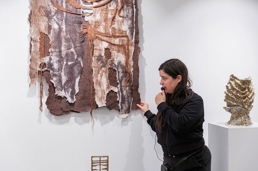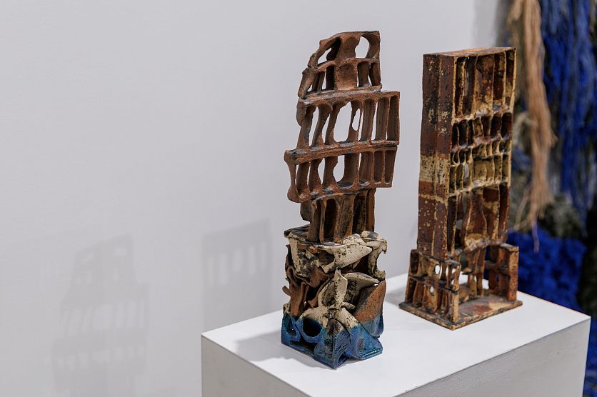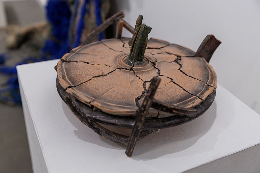 ЖелезногорскНовостиНовости культурыВ Железногорске открыли выставку текстиля и керамики «Назад к материи» В Железногорске открыли выставку текстиля и керамики «Назад к материи» Алёна Мяснянкина 38 минут назад Культура 44 Фото: Натальи Цимбал Свои работы в краеведческом музее представили художники Санкт-Петербургской академии им. Штиглица и Российского художественно-промышленного университета им. Строганова. Выставка организована в рамках проекта «Культурная афиша» программы социальных инвестиций «Вместе!» компании «Металлоинвест». Всмотреться и потрогать руками Название выставки отражает некое противопоставление общей тенденции цифровизации, когда практически всё у нас в телефоне, объяснила куратор проекта Анастасия Жолудева суть экспозиции: «Я и сама большую часть выставок смотрю в экране, и кажется, что этого достаточно. Но на примере таких работ, где произошло глубокое общение мастера с материалом, понимаешь, что фото недостаточно. Такие работы, как здесь, требуют физического присутствия зрителя, всматривания, контакта». По её словам, современные люди стали забывать, как появляются материальные вещи: из природы, из земли. То есть «назад к материи» – это не просто возвращение, как сейчас принято говорить, к традиционным техникам, а попытка восстановить связь между человеком и простым, важным, земным в то время, когда материальный мир всё больше подчиняется виртуальному. Куратор выставки Анастасия Жолудева провела первую экскурсию Фото: Натальи Цимбал Вне канонов Все работы в этой подборке абстрактны, художники не ставили своей целью передать нам готовый сюжет или образ. Скорее это игра мастера с материалом: что же получится, если из привычного вылепить непривычное. Так, например, выглядит серия работ Юлии Клоповой «Французский сад». Одна из фигур напоминает ёлку. Сконструирована она из керамических изразцов, которыми облицовывают печи и камины. Это простые изделия, с которых керамисты начинают путь в профессии и которые обычно применяются в прикладном, практическом значении удержания тепла в помещении. Но художница эти изразцы согнула, пирамидально соединила и получила скульптуру в стиле барокко. Фото: Натальи Цимбал «Что ещё мы ожидаем от художников-керамистов, кроме изразцов, тарелок и ваз? И вот Юлия создаёт как будто бы вазу, но получается снова нечто фантасмагорическое. Использованный люстр – особая разновидность глазури – добавляет эффекта своим блеском и мерцанием», – рассказывает куратор про следующие работы. Серия «Коконы» Сергея Соринского – другой тип обжига, дровяной. От электрического его отличает открытое горение, когда зола циркулирует, оседает на предметах и вместе с огнём и воздухом выступает соавтором мастера. Один из коконов словно пронзают металлические прутья. Очень напоминает изображение мозга, испещрённого сосудами. Не мысли ли человеческие, желающие уйти от реальности мира, спрятал автор в своих коконах? Фото: Натальи Цимбал Текстильные панно выставки погружают зрителя в первобытный, первозданный мир лесов и рек, одежд из шкур. Словно вход в пещеру, поросший мхом и плющом, получился у Ирен Мусиной. Художница имеет навыки традиционного ткачества, но во время практики ей стало интересно отходить от канонов и позволять себе делать в полотне разрывы и специальные спуски петель, т