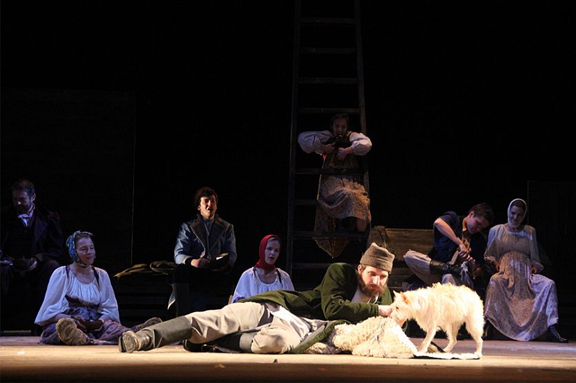 ЖелезногорскНовостиНовости в Железногорске"Муму" показали на железногорской сцене "Муму" показали на железногорской сцене Юлия Ханина 07.06.2016 20:32 В Железногорске и области 2352 Фото: Ангелина Быкова Благодаря поддержке Благотворительного фонда Алишера Усманова «Искусство, наука и спорт» железногорские зрители увидели спектакль МДТ - Театра Европы «Муму». Немногим ранее эту же постановку посмотрели жители Старого Оскола. На семейный спектакль «Муму» принято приходить родителям с детьми, ведь если юному поколению с ранних лет не привить любовь к театру, встреча с прекрасным может для него растянуться на годы. Гастроли МДТ в нашем городе – уникальная возможность почувствовать и понять, что же такое настоящее Искусство. То, которое меняет мировоззрение.Так несколько лет назад и произошло с железногорскими старшеклассниками, когда на сцене ДК МГОКа они впервые увидели чеховского «Дядю Ваню». Ребята настолько были потрясены, что после окончания спектакля дождались актеров и, с трудом подбирая слова выразили свое восхищение. Они тогда даже не произнесли слово «спектакль». Но сказали, что и не знали, что представление может быть настолько прекрасным. Они говорили банальные вещи, пробиравшие до сердца. Потому что говорили искренно", - вспоминает помощник худрука МДТ Елена Александрова. Нынешний спектакль - это возобновление постановки режиссера-постановщика Вениамина Фильштинского, которую впервые показали на сцене МДТ 32 года назад. Между тем, «Муму» представляет будущее театра. В нем играет новый состав актеров, и жизнь сейчас тоже другая. Спектакль, как живой организм, должен меняться со временем. Для этой постановки специально объявили кастинг четвероногих. В итоге новой исполнительницей стала собака по кличке Лилу. Дворняжка с грустными глазами и непростой жизненной судьбой на сцене Железногорска дебютировала вместе со своим литературным хозяином Герасимом, актером Артуром Козином. Первый выход в зрители получился удачным. Сегодня я получила радость от постановки русской классики, простой понятный сюжет, хорошая игра актеров, душе приятно. Замечательно, что благодаря Фонду мы можем видеть спектакли такого уровня на нашей сцене", - в антракте поделилась впечатлениями Лариса Сичкарь. Просто поразительно, как режиссер показал любовь на сцене. Герасим подмел, Татьяна прошла, еще подмел – и она снова сделала шаг. Так просто, но так глубоко"… - рассуждает Елена Свиридонова. «Муму» оставила след и в сердцах юных железногорцев. Сестры Полина и Агата Гридасовы признались, что спектакль заставил их о многом задуматься. Но девочки все же до последнего не верили, что увидят на сцене живую собачку, но вышло именно так. Актеры МДТ всегда и везде привыкли работать на «пять с плюсом». Только так можно рассчитывать на ответную любовь зрителя. Да и сам спектакль вовсе не о тяжелой судьбе собаки. Он о любви. И этой любовью проникнуто все: отношение Герасима к Татьяне, собачке Муму. Зритель начинает даже немного сочувствовать несчастной одинокой барыне, дети которой давно выросли и живут в Петербурге, отчего она мучается одиночеством. В этом спектакле много смешного и вместе с тем много трагичного. Так, как в нашей жизни. Чудесная русская музыка, песни, записанные в экспедициях и специально созданные для этого спектакля, раскрывают зрителю г