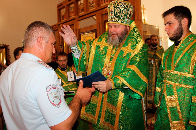 ЖелезногорскНовостиНовости в ЖелезногорскеПервая архиерейская служба в пределе строящегося храма в Железногорске Первая архиерейская служба в пределе строящегося храма в Железногорске Анна Дяченко 18.07.2016 16:33 В Железногорске и области 2771 Фото: Анна Дяченко Всего год назад на территории Железногорской полиции на месте, где предполагалось строительство храма в честь преподобного Сергия Радонежского, были освящены крест и камень. И вот в день, когда Православная Церковь чтит память преподобного Сергия Радонежского, в пределе храма уже состоялась первая архиерейская служба. После Божественной Литургии Преосвященнейший Вениамин, епископ Железногорский и Льговский, тепло поздравил прихожан с важным событием, рассказал о житие святого и, как водится в таких особых случаях, вручил архиерейские награды тем, кто внес и вносит особый вклад в его строительство. Первым медаль епархии получил Сергей Петрович Маркин, подполковник, начальник полиции. Это он инициировал строительство храма и теперь не остается безучастным к новостройке. Как сказал Владыка, значимый вклад в строительство храма внес директор по безопасности МГОКа Игорь Вячеславович Виноградов. Ему тоже на торжестве вручена медаль епархии. Слова признания за участие в таком важном деле прозвучали в адрес управляющего директора комбината Сергея Ивановича Кретова. Он с первых дней входит в попечительский совет храма, его помощь носит разносторонний характер. Поскольку Сергей Иванович уже награжден медалью епархии, ему вручена не менее ценная награда – архиерейская грамота. Уже с завтрашнего дня начнется строительство второго этажа храма. Но это ни в коем случае не будет влиять на службы в первом пределе, где теперь они будут проходить каждый день. - сказал начальник железногорской полиции подполковник Сергей Маркин. Фоторепортаж: Железногорск храм Вернуться к списку новостей Предложить новость