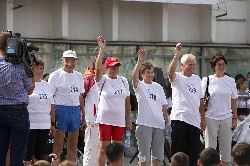 ЖелезногорскНовостиНовости в ЖелезногорскеБежали все - от мала до велика. В Железногорске прошел спортивный праздник #ВСЕНАСПОРТ Бежали все - от мала до велика. В Железногорске прошел спортивный праздник #ВСЕНАСПОРТ Евгения Кулишова 04.09.2016 15:30 В Железногорске и области 3892 Фото: Вадим Кулишов Состоялось! Впервые в нашем городе прошла уникальная акция, настоящий праздник спорта, движения, молодости! Сегодня на главной улице Железногорска состоялся самый массовый в истории нашего города забег, в котором приняли участие около полутора тысячи железногорцев. Не только спортсмены, самые простые горожане от мала до велика совершили для себя маленький подвиг: надели стартовые номера и сделали это – преодолели дистанцию в 1800 метров. Именно такое расстояние отмерили для забега организаторы от стартовой линии возле Дворца культуры до финиша напротив кинотеатра «Русь». Регистрация участников забега началась задолго до назначенной даты. В официальной группе праздника ВКонтакте и параллельно в прямом эфире радио «Железо ФМ». За это время зарегистрировано было около семисот участников. На праздник они пришли с семьями и друзьями, так что заявленная организаторами тысяча стартовых номеров для официальных участников забега разобрана была задолго до старта. Фирменных футболок тоже хватило не всем, что никоим образом не сказалось на количестве участников забега – все, кто имел твердое намерение встать на старт, сделали это. Массовость, с которой железногорцы откликнулись на призыв принять участие в забеге, поразила даже самих организаторов. «Мы думали, что будет гораздо меньше народу», - призналась Мария Красникова, директор Благотворительного фонда Алишера Усманова «Искусство, наука и спорт», приветствуя участников забега и всех, кто пришел в это воскресное утро на площадь Дворца культуры. Фонд уже не в первый раз выступает организатором масштабных и ярких мероприятий в нашем городе. И на этот раз привезенное фондом спортивно-музыкальное действо было поистине грандиозным. Чего стоят только имена гостей, которые на протяжении всего праздника были вместе с железногорцами. На стадионе «Горняк» юные легкоатлеты Железногорска получили поистине незабываемый подарок – мастер-класс от легендарного советского легкоатлета Игоря Арамовича Тер-Ованесяна. Еще до старта, пока завершалась регистрация участников забега, на стадионе «Горняк» юные легкоатлеты Железногорска получили поистине незабываемый подарок – мастер-класс от легендарного советского легкоатлета Игоря Арамовича Тер-Ованесяна. Заслуженный мастер спорта СССР, Заслуженный тренер СССР, неоднократный рекордсмен мира в прыжках в длину, пятикратный участник Олимпиад, двукратный бронзовый призёр Олимпийских игр 1960 и 1964 годов, член центрального совета IAAF – это все про него. Игорь Арамович раскрыл секрет своих побед, показав юным железногорским спортсменам упражнения эпохи советской легкой атлетики, после чего каждый мог выполнить под руководством мастера свой прыжок в длину. Вместе с Игорем Арамовичем железногорцев приветствовала гордость нашей Курской области - Заслуженный мастер спорта, победитель чемпионата мира в Японии в беге на 3 тысячи метров с препятствиями, бронзовый призер Олимпиады в Пекине 2008 года - Екатерина Волкова. Несмотря на жаркий день, Екатерина была 