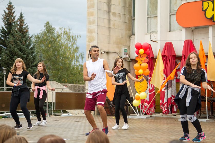 ЖелезногорскНовостиНовости в ЖелезногорскеВ Железногорске прошел Осенний бал для школьников В Железногорске прошел Осенний бал для школьников Евгения Кулишова 17.09.2016 10:03 В Железногорске и области 2289 Фото: Максим Михайлович В пятницу возле «Руси» творческие коллективы города устроили для железногорских школьников осенний бал, который назвали «Осень – золотое время талантливой молодежи». Несмотря на чуть-чуть нахмурившуюся погоду, молодежь откликнулась на приглашение и пришла на площадь. И судя по общему настроению, не пожалела. На сцене на протяжении полутора часов лучшие коллективы города дарили школьникам и прохожим свое творчество. Для зрителей пели и танцевали артисты филиала «АРТ» культурного центра «Русь», который стал организатором праздника, а также Дворца культуры МГОКа, Центра детского творчества. Продемонстрировали свое мастерство и воспитанники Ассоциации восточных единоборств. А коллектив хореографа и фитнес-тренера Ахмеда Гораба вовлек публику в танцевальный флэшмоб. Ведущие подготовили для ребят и небольшую конкурсную программу с вручением призов и подарков. Фоторепортаж: школьники концерт творчество осень Вернуться к списку новостей Предложить новость