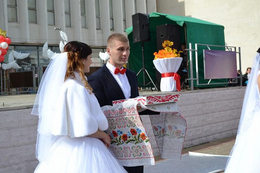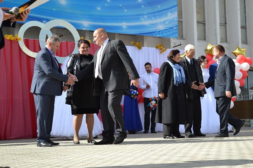 ЖелезногорскНовостиНовости в ЖелезногорскеВ Железногорске в День города поздравили молодоженов В Железногорске в День города поздравили молодоженов Редакция портала 24.09.2016 16:31 В Железногорске и области 2276 Фото: Ольга Богатикова Уже несколько лет подряд настоящей жемчужиной праздника является торжественное поздравление молодоженов, которые зарегистрировали свой брак в День города. В этот раз через живой коридор, который составили железногорцы на площади КЦ «Русь», и импровизированные ворота счастья прошли три молодые супружеские пары. Для них творческие коллективы города подготовили целую программу с хороводами, песнями, танцами и традиционными напутствиями в семейную жизнь. Новобрачные прошли по ковру благополучия, их осыпали зерном на счастье и богатство, подарили румяные свадебные караваи и молодые саженцы яблони – символ достойного крепкого супружества. На сцене у «Руси» молодоженам вручили их свидетельства о браке, а они, в свою очередь, исполнили перед лицом всего города свой первый танец и впервые поцеловались, как муж и жена. Поздравили новобрачных и пожелали им семейного благополучия глава города Виктор Солнцев, заместитель главы администрации Дмитрий Котов и председатель городской Думы Александр Воронин. Также молодые супруги получили напутствия от настоящих ветеранов семейной жизни – серебряных и золотых юбиляров – семей Гойдиных и Сотниковых. А еще молодые выпустили в небо белые воздушные шары в форме голубей – чтобы твердо рука об руку пройти через любые тяготы и невзгоды и быть рядом и в горе, и в радости. Фоторепортаж: Железногорск День города молодожены Вернуться к списку новостей Предложить новость