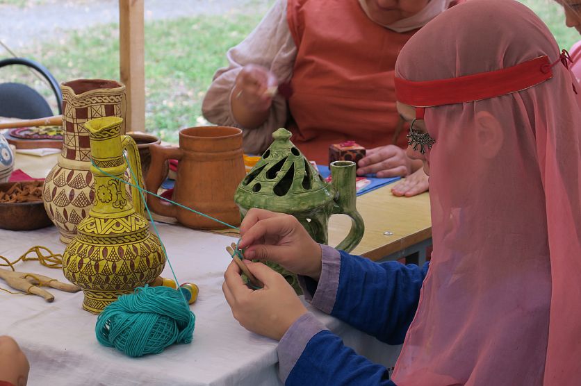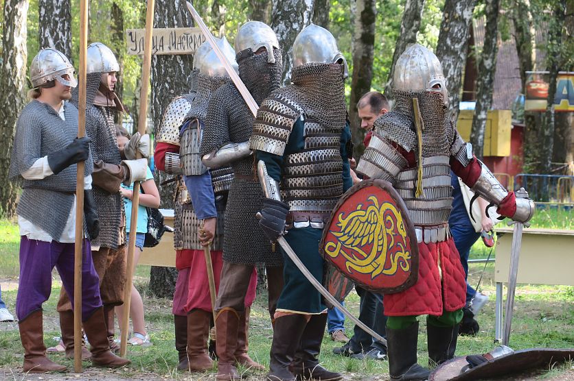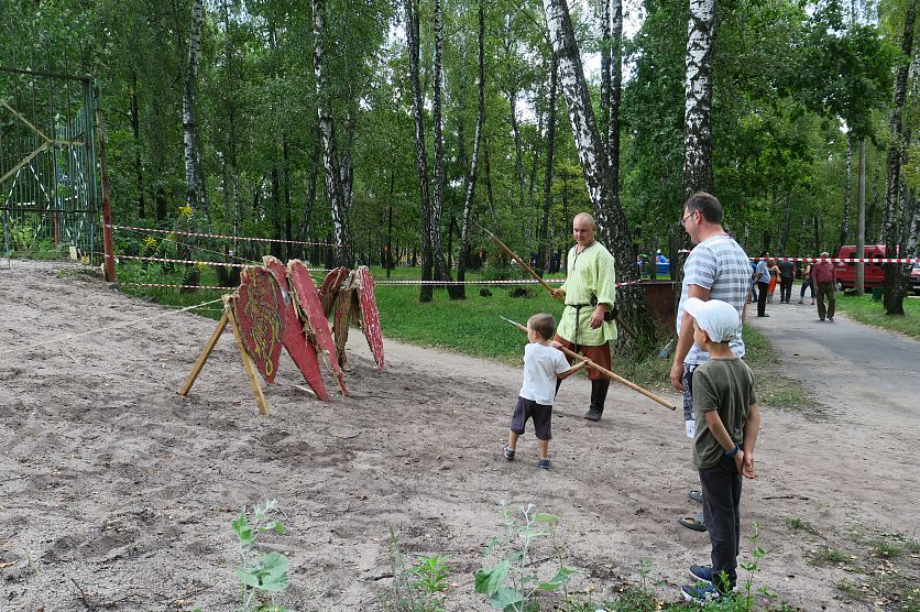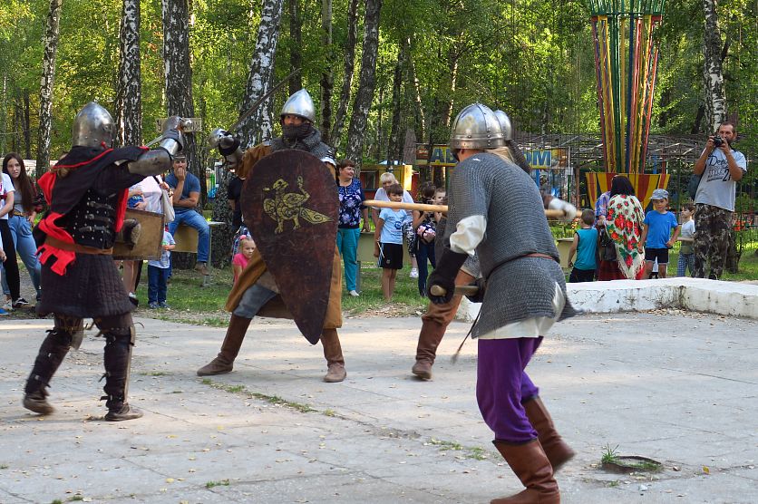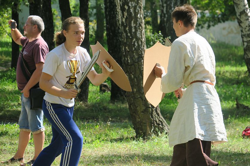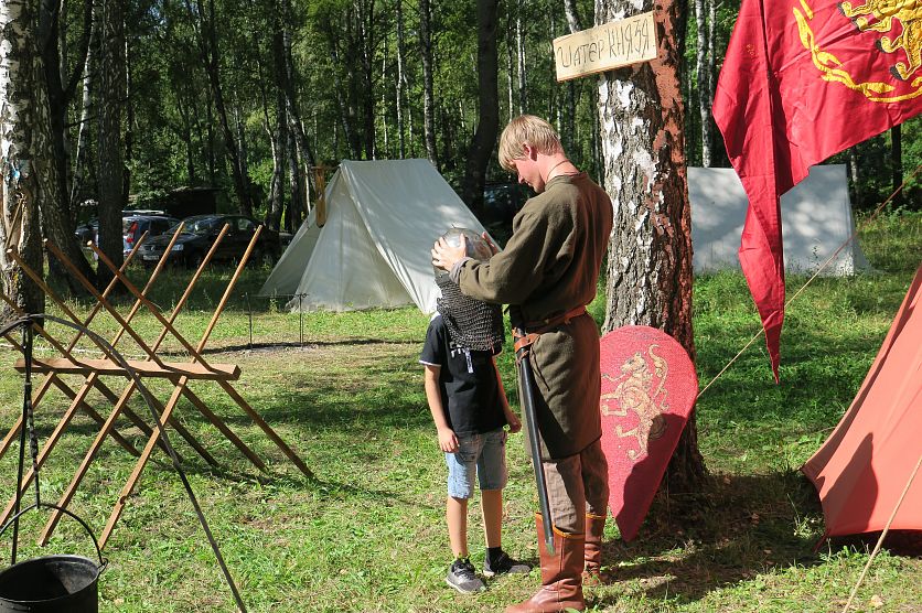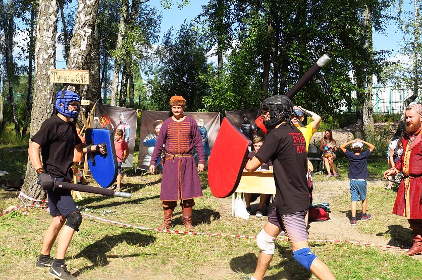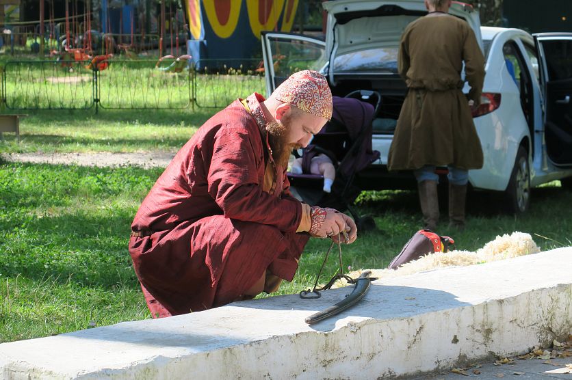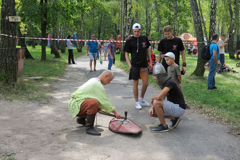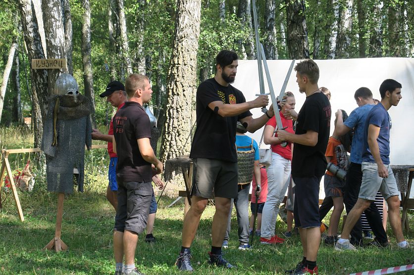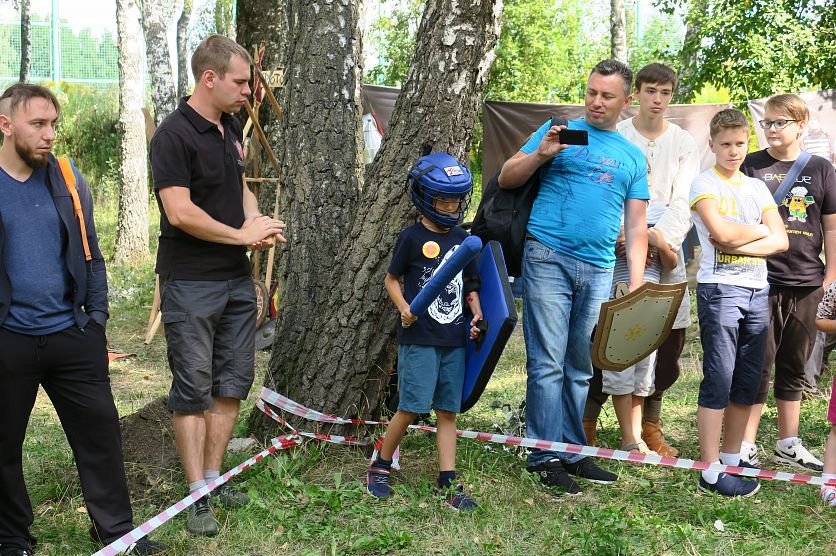 ЖелезногорскНовостиНовости в ЖелезногорскеКогда история оживает: в Железногорске прошел фестиваль исторической реконструкции Когда история оживает: в Железногорске прошел фестиваль исторической реконструкции Ольга Богатикова 26.08.2019 13:29 В Железногорске и области 3536 Фото: Ольга Богатикова В гости к витязям железногорского клуба «Застава» приехали богатыри из Курска и Белгорода. «День живой истории» Утром 25 августа железногорский парк имени Никитина превратился в средневековый город. Среди его берез раскинулись походные шатры XIII-XIV веков, вдоль тропинок протянулась улица мастеров, неподалеку от площадки для воркаута появилась кузница, а еще рыцарская крепость и самое настоящее ристалище. Крепость-лабиринт Фото: Ольга Богатикова — Сегодня мы проводим фестиваль исторической реконструкции «День живой истории». Он проходит в рамках одноименного проекта, ставшего одним из победителей грантового конкурса Металлоинвеста «Сделаем вместе!», - рассказал Андрей Киселев, организатор фестиваля, руководитель клуба исторической реконструкции «Застава». «День живой истории» - логическое продолжение «Русского стана», с которым жители нашего города познакомились во время празднования Дня металлурга. Однако августовское мероприятие оказалось гораздо масштабнее и интереснее. Это отметил и глава Железногорска Дмитрий Котов. Вместе с богатырями железногорской «Заставы» историю заставили ожить гости из Курска и Белгорода – спортивный клуб «Авалон», который приготовил для участников фестиваля турнир по современному мечевому бою (СМБ), и клуб «Дружина», предоставивший свои шатры, воинов и рукодельниц-мастериц, учивших железногорцев набивке по ткани. Фото: Ольга Богатикова Кроме того, партнерами богатырей стали краеведческий музей и школа народных промыслов «Артель» - они провели для жителей города несколько увлекательных мастер-классов по росписи глиняных игрушек, плетению из соломки, письму гусиными перьями и так далее. Рыцарский турнир Во время фестиваля каждый участник сумел отыскать себе занятие по вкусу. Пока одни примеряли доспехи, другие бросали в цель копья-сулицы, помогали кузнецу или бродили по картонной крепости-лабиринту. Фото: Ольга Богатикова Между тем, одной из «жемчужин» «Дня живой истории» стала серия обещанных сражений по СМБ, в котором приняли участие юноши и девушки в шести возрастных категориях. Все они были облачены в специальную «броню» и бились особыми мягкими мечами. Каждый поединок пользовался большим вниманием публики. Причем вне зависимости от того, кто именно выходил на ристалище – дети или взрослые. Виктор Чаплыгин приехал на «День живой истории» из Курска. Мечевым боем он занимается всего полгода, однако уже достиг неплохих результатов: по итогам турнира парень занял первое место среди юношей 12-14 лет. — Мне очень понравился фестиваль. Я попробовал писать гусиными перьями, с удовольствием следил за боями своих одноклубников. После таких мероприятий и заниматься спортом, и изучать родную историю хочется с удвоенной силой, - признается Виктор. Историческое дефиле В этот день многие участники и гости праздника гуляли по «средневековому городу» в костюмах прошлых эпох. Дабы зрители могли узнать об их нарядах побольше, было организовано дефиле, во время которого давалась подробная справка о том