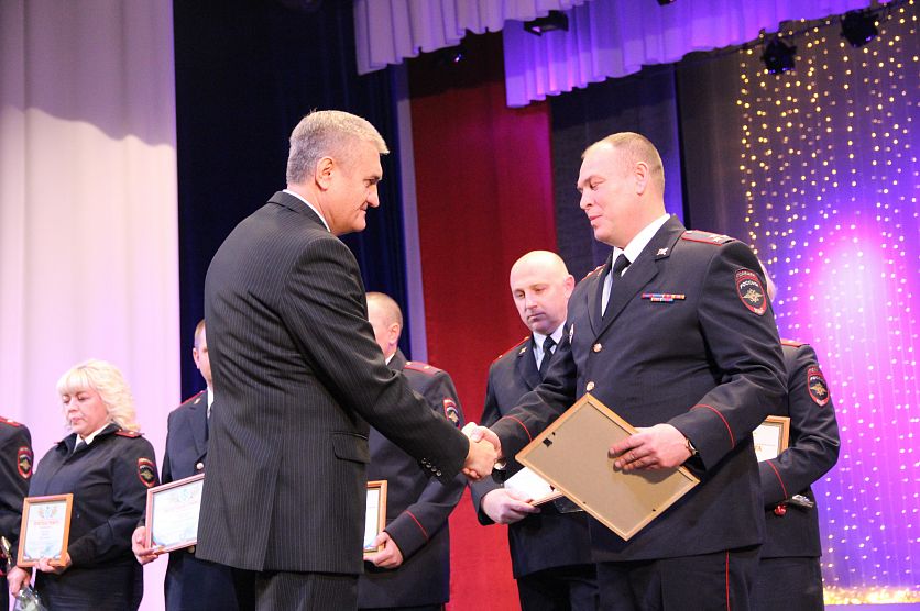 ЖелезногорскНовостиНовости в ЖелезногорскеЖелезногорских полицейских поздравили с профессиональным праздником Железногорских полицейских поздравили с профессиональным праздником Ольга Лунёва 11.11.2019 10:30 В Железногорске и области 1681 Фото: Ольга Лунёва 8 ноября, в преддверии Дня сотрудника органов внутренних дел стражи порядка отметили профессиональный праздник. По этому случаю торжество развернулось в большом зале Дворца горняков. Отличившимся в этом году вручили почетные грамоты, благодарности и новые погоны. На встрече вспомнили всех, кто погиб, защищая закон и сохраняя целостность Российской Федерации. В гости к полицейским с поздравлениями пришли представители городской власти, Михайловского ГОКа, духовенства... В зале – и ветераны, и совсем молодые сотрудники, отслужившие всего пару лет, но уже знающие, каково это – охранять порядок. Начальник межмуниципального отдела МВД России «Железногорский» Василий Шалдаев, открывая торжественное собрание, поблагодарил коллектив за службу. — Нам с вами выпала честь стоять на страже правопорядка и закона, быть той опорой, на которую любой человек может рассчитывать в сложный момент своей жизни, быть той силой, которая поддерживает в людях веру в справедливость, – сказал он. От лица генерального директора УК «Металоинвест» Андрея Варичева, управляющего директора МГОКа Сергея Кретова и многотысячного коллектива комбината слова благодарности за службу произнес директор по корпоративным вопросам и акционерной собственности МГОКа Андрей Бузыкин. — От вашей работы зависят жизнь и здоровье людей, безопасность нашего города. Мы высоко ценим ваш труд, компетентность и верность своему долгу. Искренне благодарю вас за добросовестное исполнение служебного долга, мужество и самоотверженность, – сказал Андрей Иванович. С пожеланиями мужества, силы и храбрости тем, кто посвятил свою жизнь нелегкой службе в органах внутренних дел, кто посвятил себя своей стране, своему народу к присутствующим обратились глава города Дмитрий Котов и председатель городской Думы Александр Воронин. Особые слова благодарности прозвучали в адрес ветеранов и тех, кто в свой профессиональный праздник находится на боевом посту, а также – семьям, которые ждут и верят, тревожатся и понимают. День полиции – это и их праздник тоже. К поздравлениям присоединились хореографические и вокальные коллективы Дворца горняков. Фоторепортаж: Железногорск День полиции торжественное собрание награды Вернуться к списку новостей Предложить новость