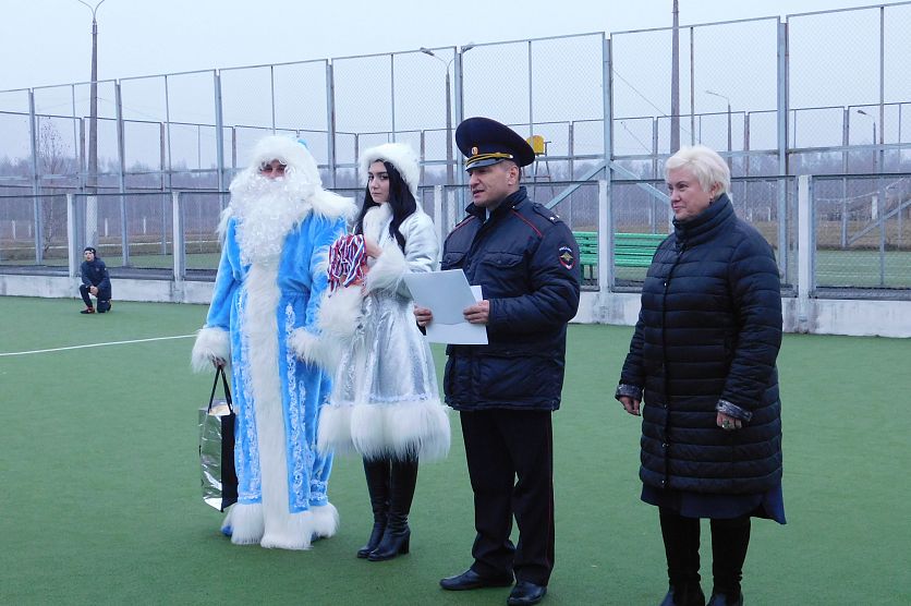 ЖелезногорскНовостиНовости в ЖелезногорскеЮных железногорцев поздравил с Новым годом полицейский Дед Мороз Юных железногорцев поздравил с Новым годом полицейский Дед Мороз МО МВД России «Железногорский» 26.12.2019 14:15 В Железногорске и области 1021 Фото: предоставлено МО МВД России «Железногорский» Железногорские стражи порядка устроили праздник для воспитанников Центра «Перспектива». Мероприятие прошло в рамках всероссийской благотворительной акции «Полицейский Дед Мороз». По словам правоохранителей, ее главная цель - подарить девочкам и мальчикам хорошее настроение, тепло и заботу, чтобы ни один ребенок не почувствовал себя одиноким. Новый год – самый любимый праздник детворы, а потому ребята очень радостно встретили Деда Мороза и Снегурочку. Читали им стихи, пели песни, отгадывали вместе с ними загадки. Также полицейские организовали для ребят товарищеский матч по мини-футболу. Игра получилась интересной и зрелищной: команды соревновались с большим энтузиазмом, а потому получили отличный заряд бодрости и позитива. В конце встречи стражи порядка вручили детям сладкие подарки и поздравили их с наступающим Новым годом и Рождеством. Фоторепортаж: Железногорск центр Перспектива полицейский дед мороз Вернуться к списку новостей Предложить новость