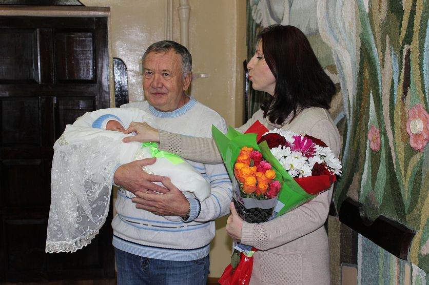 ЖелезногорскНовостиНовости в ЖелезногорскеНакануне Дня матери железногорской семье вручили свидетельство о рождении ребенка прямо в роддоме Накануне Дня матери железногорской семье вручили свидетельство о рождении ребенка прямо в роддоме Евгения Кулишова 26.11.2016 09:16 В Железногорске и области 2320 Фото: Евгения Кулишова / Zhel.City 25 ноября в железногорском роддоме в честь Дня матери прошла выездная торжественная регистрация рождения. В этот предпраздничный день из родильного отделения выписывались мама Татьяна Ковалева с сыном Ванечкой. Вместе с ближайшими родственниками – бабушкой, дедушкой и, конечно, счастливым папой – с цветами и теплыми словами поздравлений их встречали сотрудники отдела ЗАГС города Железногорска и священник Железногорской епархии отец Виталий. Добрые напутствия сказала и старшая медсестра отделения новорожденных Анна Рыжова. В семье Ковалевых это уже второй ребенок. Разница с первенцем – девять лет. Ванюша родился 21 ноября. И его рождение стало неожиданным, но замечательным подарком для его родителей к годовщине свадьбы. Накануне, 17 ноября, Татьяна и Василий отметили 10-летие совместной жизни. Татьяна, призналась, что, конечно, как маме ей хотелось дочку. Но старший сын ждал именно братика. Так маме и сказал: «Буду Боженьку просить, чтобы у нас был братик». Малыш родился на радость всем – здоровеньким, с весом 3,350 и ростом 53 сантиметра. Уважаемые родители, воспитание ребенка - это большой, сложный, благородный труд и огромная ответственность. А дружная семья - залог счастливого детства. Желаю вам семейного счастья, добра, благополучия. Пусть ваши детки растут здоровыми, окружайте их заботой и вниманием», - пожелала счастливому семейству начальник отдела ЗАГС Светлана Клименкова, вручая самый первый документ – свидетельство о рождении Ивана Ковалева. Фоторепортаж: день матери роддом ЗАГС Вернуться к списку новостей Предложить новость