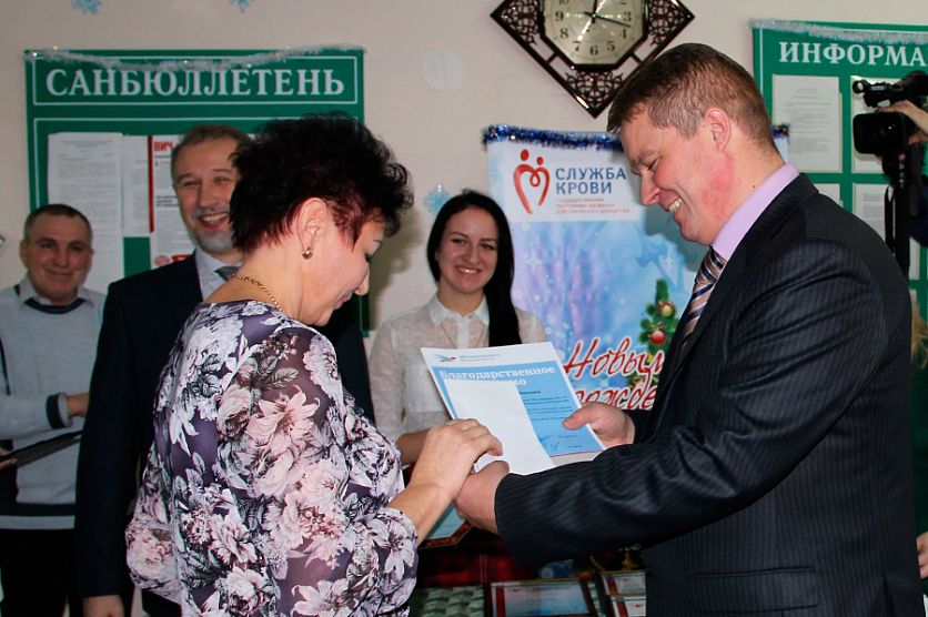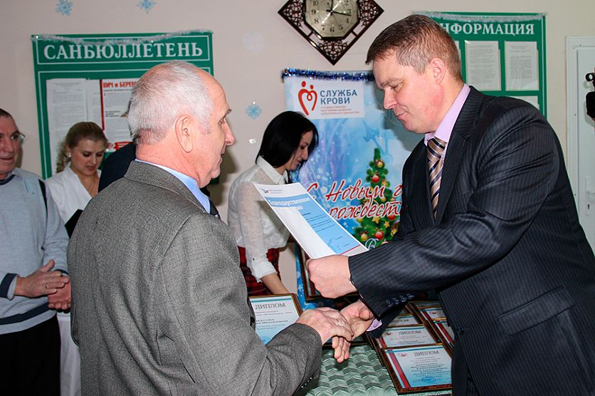 ЖелезногорскНовостиНовости в ЖелезногорскеВ Железногорске наградили почетных доноров В Железногорске наградили почетных доноров Дмитрий Голоцуков 15.12.2016 10:40 В Железногорске и области 2622 Фото: Дмитрий Голоцуков 14 декабря на Железногорской станции переливания крови прошел День донора. 95 железногорцев сдали кровь, которая в будущем обязательно спасет чью-то жизнь. В этот же день двадцать лучших доноров города получили Почетные грамоты и премии. Большинство из них сдают кровь уже не один десяток лет. Главный врач станции переливания крови Алексей Ковалев, обращаясь к собравшимся, отметил, доноры ежедневно спасают человеческие жизни, без них невозможна полноценная медицинская деятельность. Вы отдаете частицу себя для того, чтобы неведомый вам, незнакомый человек получил надежду на выздоровление, надежду на саму жизнь», - подчеркнул Алексей Ковалев, выражая почетным донорам признательность от имени всех курян, чьи жизни и здоровье были спасены благодаря донорской крови. Об этом говорил и главный специалист службы охраны здоровья Михайловского ГОКа, депутат городской Думы Борис Сорокин. Он вручил донорам благодарственные письма от компании «Металлоинвест» и подчеркнул, что компания всегда проводила эффективную социальную политику в регионах присутствия, и сфера здравоохранения всегда входила в число приоритетных. Фоторепортаж: донорство день донора награждение Вернуться к списку новостей Предложить новость