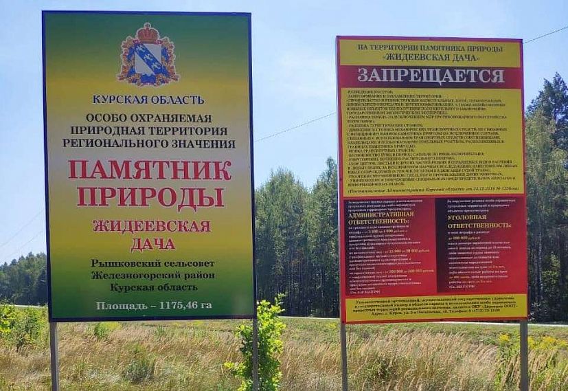 ЖелезногорскНовостиНовости в ЖелезногорскеОсобо охраняемую природную территорию в Железногорском районе обозначили аншлагом Особо охраняемую природную территорию в Железногорском районе обозначили аншлагом По информации пресс-службы администрации Курской области 02.09.2021 15:29 В Железногорске и области 495 Фото: курск.рф Это необходимо для охраны мест обитания редких видов флоры и фауны. Памятник природы «Жидеевская дача», расположенный в Железногорском районе, – территория с лиственными и хвойными лесами, лугами, болотами, занимающими значительную площадь, обладает ландшафтной и эстетической ценностью. На границе памятника природы регионального значения теперь установлены предупредительные и информационные аншлаги. Они сообщают о наличии особо охраняемой природной территории, ее названии, наименовании нормативного правового акта, утверждающего границы ООПТ, а также предупреждают о запрещенных видах деятельности на охраняемой территории. Ещё один такой аншлаг появился у памятника природы «Степные балки около с. Мелавка» в Касторенском районе, который уникален свой степной растительностью, отметили в пресс-службе комитета природных ресурсов Курской области. Железногорский район Жидеевская дача особо охраняемая природная территория Вернуться к списку новостей Предложить новость