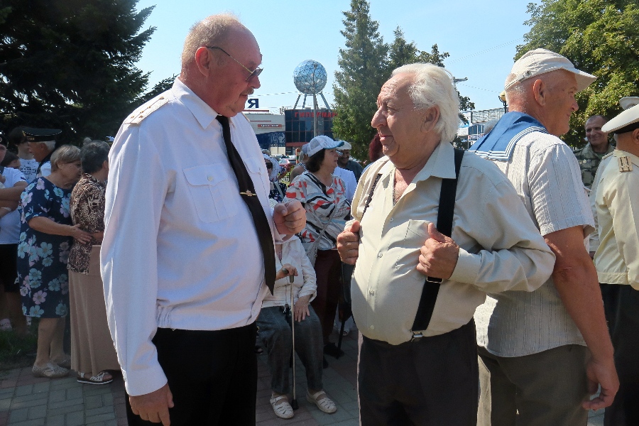 ЖелезногорскНовостиНовости в ЖелезногорскеВ День Военно-морского флота в Железногорске установили якорь и провели парад тельняшек В День Военно-морского флота в Железногорске установили якорь и провели парад тельняшек Алёна Мяснянкина 28.07.2024 14:13 В Железногорске и области 1959 Фото: Алёна Мяснянкина В городе горняков нет судоходных рек и флота, но жителей, причастных к корабельной службе, немало. Поэтому профессиональный праздник моряков, приходящийся на последнее воскресенье июля, отмечать начали накануне. Ты морячка, я моряк На летней площадке в парке развернулось тематическое шоу #4Т с активностями для горожан. Гостей встречали тантамарески – стенды для фотосъёмки с отверстиями для лиц. Можно было почувствовать себя капитаном корабля, боцманом, русалкой, жителем подводного мира. Неподалёку расположились панно для художников всех возрастов. Мастер-классы зазывали на изготовление корабликов и морских животных. Любимый железногорцами проект пригласил горожан прийти на праздник в тельняшках – для проведения парада на сцене. И многие откликнулись. «Увидела приглашение в ленте ВКонтакте, и решили прийти с ребёнком. Хотя дочка и маленькая, но с простых и понятных детям символов можно начать изучение воинских праздников. Муж служил в ВДВ, поэтому тельняшки нам близки», - поделилась мнением жительница города Маргарита. Для молодых участников вечера декорации, мыльные пузыри и брызги воды были в большей степени весёлым антуражем, но папы, гуляющие по площадке, иногда погружались в воспоминания о службе. Железногорец, назвавший себя Игорем, рассказал о том, как попал в морскую пехоту Североморска и каким встретило его Баренцево море: «Раньше представлял себе только черноморское побережье, где отдыхал. Когда уезжал в армию, знакомые ребята звали: «Поехали с нами туда служить». По воле судьбы я тоже оказался на море, только на другом. Там, где всего три месяца тепло, а в остальное время стужа. Когда приехал в ноябре, было минус 38 градусов, ветер просто сносил с ног. Но служба везде одинаково важна». Фото: Алёна Мяснянкина. Экипаж – семья Воспоминаниями делились друг с другом и участники торжественного митинга в честь Дня ВМФ. Он состоялся сегодня, 28 июля, в сквере Воинов-интернационалистов. Сергей Суворов после прохождения учёбы в Анапе служил в морчасти погранвойск в Баку. На сторожевом корабле вместе с товарищами он охранял границу с Ираном, проходящую в Каспийском море. В 80-е годы служба у моряков длилась три года. За это время у Сергея Александровича, дослужившегося до звания старшины 1-й статьи, было немало ситуаций, о которых он помнит и красочно рассказывает: «Один раз шхуну задерживали, её прибило к нашему берегу сильным штормом, баллов 7-8. Нас тоже хорошо поболтало, но мы достигли её по координатам, полученным с берега, высадились и препроводили для разъяснений». Пока мы разговариваем, из динамиков доносится песня «Экипаж – одна семья». «Уже 41 год, как я отслужил, но вспоминаю годы службы, как счастье: такая крепкая дружба была. Меня оставляли как мичмана, но я ушёл матросом 1-го класса на гражданское судно в Калининград, рыбу ловить. 6 лет провёл на море, а потом обосновался на суше. В гости, чтобы встретиться с сослуживцами из Железногорска и Курска, приехал на митинг из Белгорода Юрий Панасевич. Он служил в морской пехоте Каспий