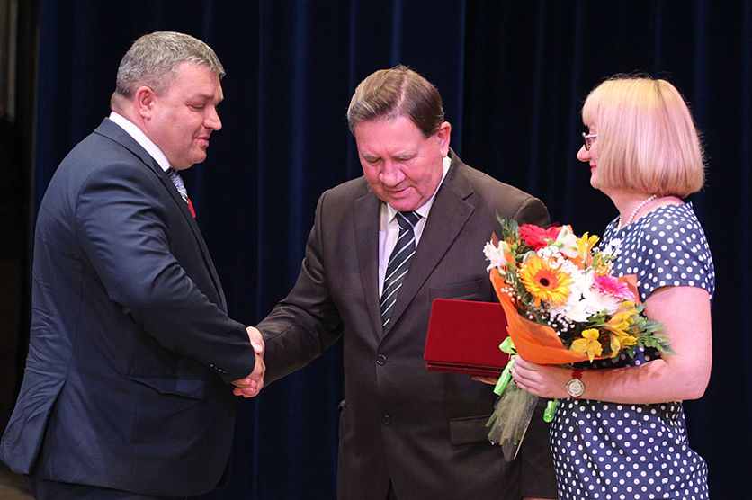 ЖелезногорскНовостиНовости в ЖелезногорскеГорняков Железногорска наградили первые лица области и компании «Металлоинвест» Горняков Железногорска наградили первые лица области и компании «Металлоинвест» Ангелина Быкова 13.07.2017 16:50 В Железногорске и области 2092 Фото: Максим Михайлович Сегодня в большом зале Образцового дворца культуры и техники МГОКа состоялся торжественный вечер, посвящённый Дню металлурга и 60-летию комбината. На большом экране мелькают картинки, да не просто фотослайды, а рисунки, созданные в технике песочной графики. Видеоряд уникален - он воссоздаёт чёрно-белые снимки главных моментов в истории Михайловского ГОКа: первые разведработы и первый колышек в основание карьера, первый взрыв и первый ковш руды, первый концентрат и, конечно же, первые окатыши... Ещё более символичным делает видео то, что все эти рисунки художник нарисовал не песком, а настоящим железорудным концентратом Михайловского ГОКа. И вот со сцены уже приветствуют горняков лучшие артисты Дворца культуры: песни, наряды, декорации - сегодня всё продумано до мелочей. Без сомнений, работники ОДКиТ постарались на славу - от многих номеров у сильных и стойких горняков мурашки по коже, слёзы в глазах. Можно ли поверить, что нашему предприятию и родному городу уже 60! Казалось бы, только вчера началось освоение, а теперь мы - мощнейшее производство страны, только вчера здесь была одна улочка, а теперь - многотысячный красавец-Железногорск, - с гордостью говорят первопроходцы. Конечно же, первые слова благодарности именно им - ветеранам Михайловского ГОКа. А ныне работающим - доброе напутствие: продолжать и развивать славные традиции, перенимая бесценный опыт и мудрость у старшего поколения. В этот день поздравить работников горнометаллургической отрасли приехали в Железногорск губернатор Курской области Александр Михайлов, генеральный директор УК «Металлоинвест» Андрей Варичев, а также представители предприятий Компании. Почётные гости вручили железногорским горнякам государственные, региональные и корпоративные награды за добросовестный труд и высокий профессионализм, пожелав успешного развития градообразующему предприятию и процветания Железногорску. Фоторепортаж: торжественный вечер концерт Вернуться к списку новостей Предложить новость