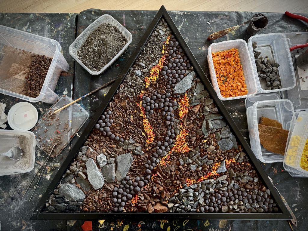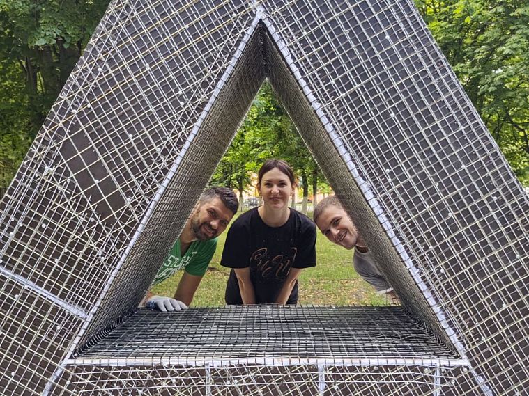 ЖелезногорскНовостиВ Железногорске появится новый арт-объект из железной руды В Железногорске появится новый арт-объект из железной руды Алёна Мяснянкина 09.07.2025 10:12 608 Фото: Алёны Мяснянкиной Загадочный треугольник, установленный в Аллее Варичева, уже привлёк внимание горожан. Автор проекта, художница Дарья Назарова рассказала об идее и воплощении. «Задумалась, что у нас в городе до сих пор не было символа, отражающего нашу железногорскую идентичность. И поняла, что ни разу в дизайне мы не использовали топографический знак железной руды, тот, что изображают на картах, а это равносторонний треугольник», – рассказала дизайнер. Железногорск – это буквально «железная гора». Треугольник отражает этот образ. «Почему руда? Потому что это наш код, это то самое, что дало рождение городу и всех нас здесь собрало». Знак руды и покрыт будет рудой. Найденное визуальное решение объёмного арт-объекта удачно соединилось с опробованной художницей ранее технологией создания мозаики из разных фракций продукции горно-обогатительного производства. Инженеры проекта Александр Назаров и Александр Чаленко установили объект на площадку, которую заранее подготовили сотрудники Городской коммунальной службы. Место было выбрано вместе с представителями администрации города, и в этой точке удачно сошлись сама аллея в честь руководителя Металлоинвеста, находящийся рядом краеведческий музей и, главное, самая высокая поверхность Железногорска, с которой проводят различные измерения. Инженеры проекта ведут монтаж Фото: Алёны Мяснянкиной Металлическая фигура установлена на трубчатую основу так, что кажется парит над поверхностью. Внизу она будет подсвечена, и этот эффект только усилится. Поверхность изделия обтянута сеткой, на которую при помощи специального клея и будут крепиться кусочки будущего панно. Нечто подобное горожане видели на мастер-классе фестиваля «Трансформация». Теперь «Рудная мастерская» – так называется проект Дарьи, поддержанный грантовым конкурсом «Вместе с моим городом» – развернётся здесь 12 июня. С 10 утра до позднего вечера взрослые железногорцы могут присоединиться к работе. Это ещё один момент, ставший визитной карточкой проектов Дарьи – привлечение к их созданию жителей, чтобы все мы могли почувствовать свою сопричастность к творческим переменам. Так уже получилось этим летом с панно Музея природы – оно как раз через дорогу от нового объекта. Фрагмент визуализации будущего арт-объекта Фото: Дарьи Назаровой Пока идёт подготовка к общей работе, сама художница делает эскизы, добавляя в рудные фрагменты кусочки смальты и играя с разной фактурой и объёмом материалов. «Приглашаю горожан, и особенно работников Михайловского ГОКа, горняков присоединиться, чтобы увидеть, что руда, которую они видят обычно в технологическом процессе, очень красива. Увидеть эстетику, текстуру, красивые оттенки, переливы этого природного материала», – приглашает Дарья Назарова. Открытие арт-объекта состоится в ходе празднования Дня металлурга, 19 июля. Дарья Назарова День металлурга Вернуться к списку новостей Предложить новость