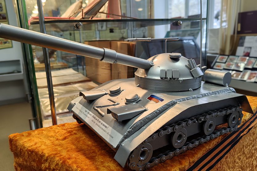 ЖелезногорскНовостиФоторепортажиИсторию в экспонатах хранят в Железногорском политехническом колледже Историю в экспонатах хранят в Железногорском политехническом колледже Алёна Мяснянкина 18.05.2025 14:53 Фоторепортаж 1603 Фото: Экспонаты музея. Алёны Мяснянкиной В Международный день музеев предлагаем вам посетить залы профессионального учебного заведения. Руководитель музея «Наследие» Римма Ведёхина показала Zhel.city экспозиции, посвящённые Великой Отечественной войне, памяти выпускников – участников военных операций разных лет и советскому быту. Пластинки, плакаты и глянец Возглавив в сентябре 2022 года музейное дело колледжа, Римма Анатольевна попала как раз к дате 100-летия СССР. Собрать интересную экспозицию ей удалось благодаря личной тяге к сохранению вещей и помощи преподавателей. «Я приходила в лаборатории и говорила: «Не уйду, пока что-нибудь не дадите». Вот так попал на полку этот тяжёлый металлический мишка, – улыбается Ведёхина. – Его настоящая история всплыла позже, когда музей посетили ветераны МГОКа». Эта фигурка – часть истории освоения Михайловского месторождения Фото: Алёны Мяснянкиной Оказалось, что ничем не примечательную фигурку, которую преподавателю принёс студент в качестве собственной работы для зачёта, в далёкие 1960-е крепили на машинах ЯАЗ, работавших в карьере. На минских МАЗах были быки, как символ Беловежской пущи, а на ярославских машинах – медведи. Позже ярославский завод перестал выпускать большегрузы, перешёл на изготовление моторов, а сувенир из прошлого остался у кого-то из первопроходцев карьера. Такие истории студентам колледжа, посещающим музей, нравятся. По словам педагога, они вообще любят этот зал. «Вот в этой вазе были собраны брендовые советские конфеты: «Москвичка», «Красный мак», «Петушок». Вы видите, что осталось?» – смеётся женщина. И говорит, что вообще-то ребятам интересно здесь многое. Пионерскую форму Римма Ведёхина принесла свою: «Когда вступали в комсомол, на пионерских галстуках все на память расписывались. Вот и на моём внутри есть надписи: «На память будущим годам», «Прощай, детство. Здравствуй, юность!» Форма советских школьников Фото: Алёны Мяснянкиной Здесь есть советские журналы «Работница» и «Крестьянка», чешская «Девушка» и болгарская «Женщина», первые журналы мод «Бурда». Удивительно, но педагоги даже нашли газеты с важными датами. Например, Юлия Моховая принесла «Ударный фронт» от 12 ноября 1982 года, из архивов своего отца, о смерти Леонида Брежнева. Она же подарила музею подольскую швейную машинку. О каждом экспонате Римма Ведёхина ищет дополнительную информацию. Так, рассказывает, что у героя фильма «Любовь и голуби» Лёньки магнитола латвийского производства, как раз такая, как экспонат перед нами. Или, показывая образцы ткачества курского края, говорит, что суджанские ковры не перепутаешь с другими, в них обязательно будут розы или ромбы и свои оттенки цвета. В ходе сбора предметов советского быта насобиралось много и более древнего материала, поэтому в ближайшее время появится новый зал – этнографии. Один из первых экспонатов музея – панно «Большой Дуб» Фото: Алёны Мяснянкиной Чтобы дети помнили А вот одним из первых экспонатов, с которого вообще начался музей колледжа, стало панно «Большой Дуб». Кто-то из художников презентовал его Музею партизанской с