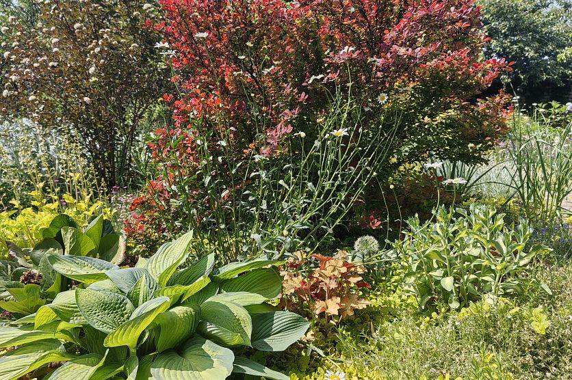 ЖелезногорскНовостиФоторепортажиДендрарий на 10 сотках вырастили железногорцы Дендрарий на 10 сотках вырастили железногорцы Алёна Мяснянкина 15.06.2025 12:17 Фоторепортаж 4156 Фото: Участок супругов Карповых / Алёны Мяснянкиной Ирина и Валерий Карповы известны железногорцам, как отличные врачи – стоматолог и лор. До 75 лет посвящали они себя медицинской профессии и вылечили тысячи пациентов. Но коллеги и близкие друзья знают их ещё с одной стороны – как увлечённых дачников. На их участок вполне можно водить экскурсии, при этом любоваться не картофелем и зеленью, а декоративным садом. Только названий деревьев, многолетних кустарников и цветов здесь около 150, количество же ещё больше. Дизайн – от сердца Входишь в увитую виноградом арку и попадаешь в Эдем: хвойные острова здесь сменяются цветниками, кустарниками, почвопокровными травами; дорожки извилисто обходят лавочки и качели и словно зовут прогуляться дальше. Нет ни сантиметра пустого пространства. И каждое деревце, кустарник, строение имеют свою форму, назначение в общем дизайне. Фото: Алёны Мяснянкиной Обвитый плющом сарайчик, нарисованные девичьи фигуры на стенах мысленно отсылают в Прованс или английское подворье. Показывая на беленькую будочку с рисунком, хозяйка, улыбаясь, говорит, что не успела написать с одной стороны возле беседки musical pause, а с другой, на входе – biologi pause. Только последнее объясняет, что это всего лишь дачный туалет, но разве можно было подумать. Ирина Александровна говорит, что принесённые подругой распечатанные рисунки увеличила через сетку, сделала лекала, нанесла на поверхность и раскрасила водоэмульсионной краской. И вот так причудливо она каждую обычную хозяйственную деталь превращает в элемент декора. «Муж поставил металлическое ограждение, чтобы вода весной не стекала в подвал. Польза понятна, но некрасиво, думаю, чем же его закрыть? Пришла идея выложить камнями», – рассказывает железногорка. Теперь несколько ступенек спуска с улицы к участку выглядят как в южных селениях. Или вот скамеечки – оказалось, подобрать их было непросто: «В первые годы мы здесь только работали, а присесть негде: ни стола, ни стульев, только копать, полоть, урожай собирать, а отдыхать дома. И я подумала, что надо купить какие-то стулья или кресла. Приобрела пластиковые, но смотрю, Валерий Николаевич не садится. Он родом из деревни, и значит, неудобно ему, не привычна такая мебель. Нашла в одном магазине лавочку кованную, купила одну на пробу – понравилась. Теперь они в разных уголках у нас стоят». Качество дорожек так же проверено временем и гостями. Камни не просто лежат на земле, сначала были намечены зигзаги серпантина, потом выкопаны траншеи, засыпаны песком, утрамбованы ногами, и только потом в виде мозаики подобраны разные природные куски для дорожки. «Первый год, как я их сделала, была проверка. Пришли к нам несколько семей с детьми, думаю, ох, начнут бегать, спотыкаться. Не дай бог травмируются. Нет, всё правильно уложено, ни один камешек не шелохнулся», – поясняет хозяйка. В трудные годы – простые решения В этот момент тропинка вывела нас к устроившемуся на квадрате из плиток декоративному поросёнку. И тут выяснилось, что 30 лет назад поросята на этом участке жили самые настоящие. Фото: Алёны Мяснянкиной «Мы сюда приехали 40 лет назад с Кубани, поменяли квартиру. У партнёр
