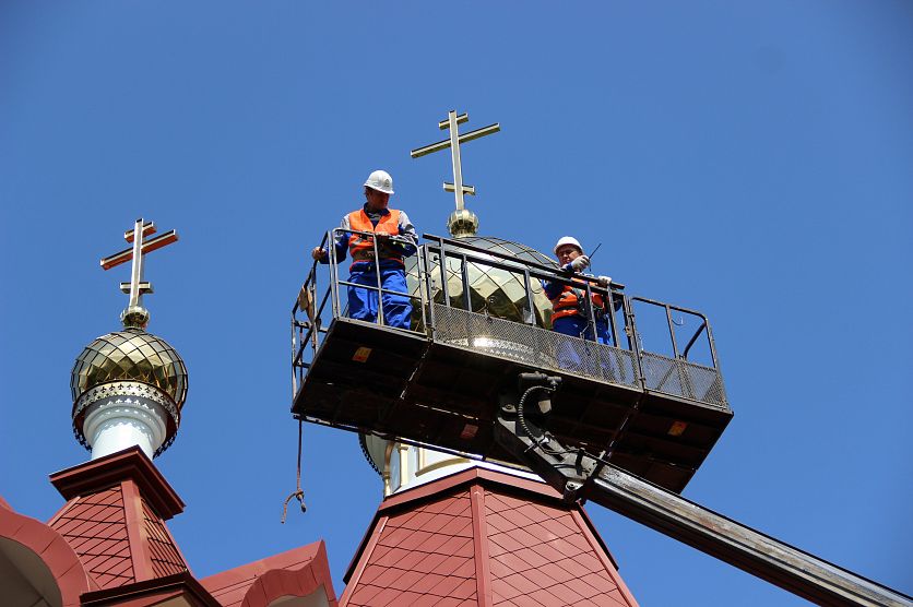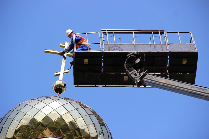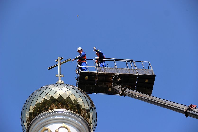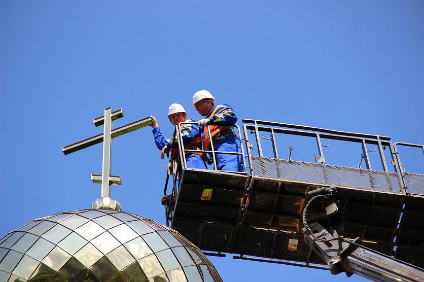 ЖелезногорскНовостиНовости религииНа строящийся храм Святой Варвары установили кресты На строящийся храм Святой Варвары установили кресты Ольга Лунёва 20.07.2019 16:15 Религия 5171 Фото: Ольга Лунёва Сегодня днём на куполах, строящегося в десятом микрорайоне храма Святой Варвары Великомученицы – покровительницы горняков и шахтёров, появились кресты. Яркий храм-часовня из жёлтого и красного кирпича собрал у своих стен десятки верующих, которые с нетерпением ждут его открытия. Присутствовали при этом важном событии и те, благодаря кому строительство стало возможным. Напомним, возведение православной церкви ведётся в рамках трехстороннего социального-экономического партнерства между Металлоинвестом и администрациями города и области. В разработке проекта активное участие принимали специалисты МГОКа. Управляющий директор Михайловского ГОКа Сергей Кретов поздравил собравшихся с общим праздником всех железногорцев – Днём металлурга и знаковым событием для всех православных, выразив надежду на то, что строительство храма благополучно завершится и поблагодарил рабочих, стараниями которых продолжается это доброе дело. После чина освящения, под мелодичный звон колоколов массивные кресты с помощью спецтехники подняли на высоту и укрепили их на куполах. Кресты установили, как и полагается, на восток – к восходу солнца, туда, где зарождается жизнь. Происходившее воспринималось верующими, как настоящее чудо. По мнению присутствующих храм «стал настоящим украшением микрорайона – над ним сияют золотые купола и кресты, которые видны издалека». Установка крестов означает важный этап – окончание наружных работ. Впереди внутренняя отделка. Совсем скоро строители приступят к монтажу электропроводки, шпаклёвке и штукатурке стен, облицовке цоколя гранитом, обустройству территории вокруг храма … И хотя работы ещё немало – появление крестов – это видимый образ созидания святыни. Фоторепортаж: Железногорск Металлоинвест МГОК храм Святой Варвары Вернуться к списку новостей Предложить новость