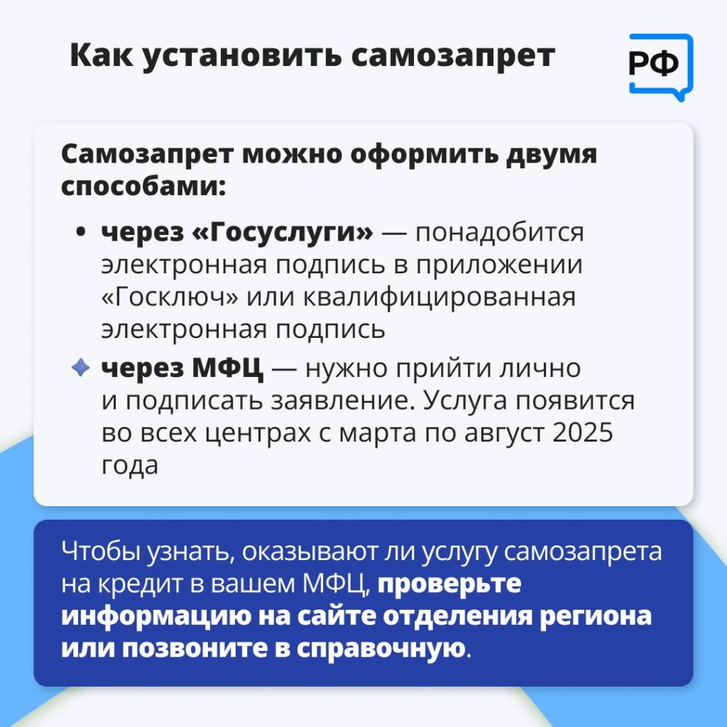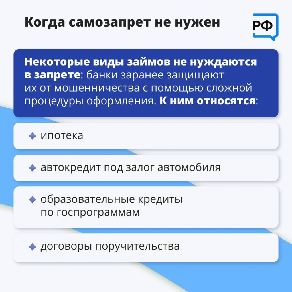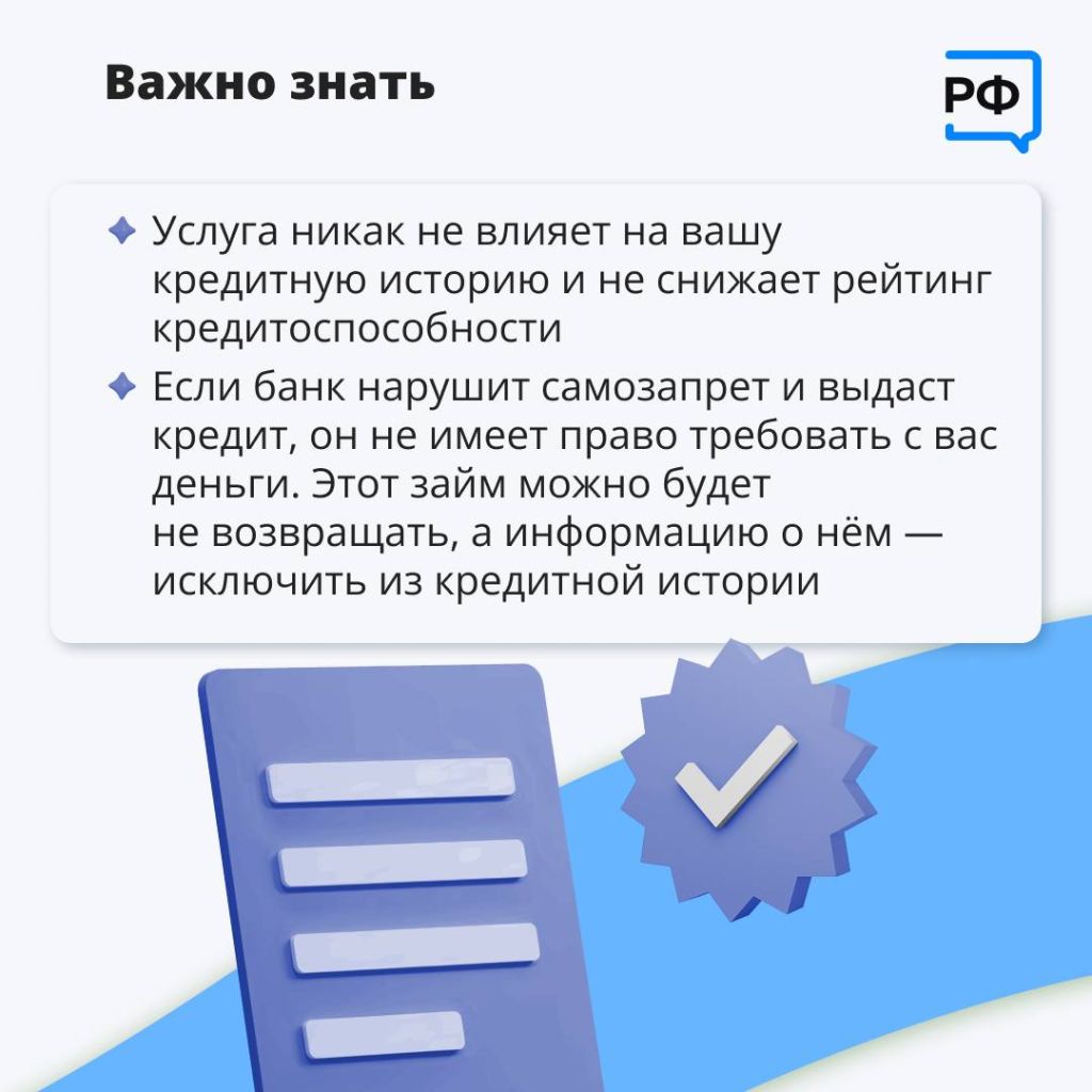 ЖелезногорскНовостиНовости обществаЖелезногорцы могут установить добровольный запрет на выдачу кредитов и займов Железногорцы могут установить добровольный запрет на выдачу кредитов и займов 04.03.2025 13:00 Общество 1006 Фото: freepik.com Новый сервис на «Госуслугах» направлен на защиту от кредитного мошенничества. С 1 марта 2025 года у всех россиян появилась возможность установить самозапрет на выдачу кредитов и займов банками и микрофинансовыми организациями. Он оформляется бесплатно через «Госуслуги». Самозапрет вносится в кредитную историю и действует бессрочно. Снять его можно в любой момент также на «Госуслугах». Позже наложить и снять запрет можно будет и через МФЦ. Услуга распространяется на все потребительские кредиты и займы, в том числе дистанционные. Самозапрет может быть полным или частичным. Ограничения не устанавливаются на ипотеку, автокредит, образовательный кредит с господдержкой, а также на уже заключённые договоры. Для установления и снятия самозапрета обязательно нужен ИНН. Именно он является основным уникальным идентификатором гражданина в механизме самозапрета. Если у человека установлен самозапрет на кредиты, банки и МФО обязаны отказать ему в выдаче займа. Если кредит всё же оформят, заёмщик не обязан его возвращать, а сам договор можно удалить из кредитной истории. Даже если долг продадут другим компаниям, они тоже не смогут требовать деньги. Как сообщили в РБК, за два дня работы сервиса услугой воспользовались 1,7 млн россиян, а 3,4 млн — получили связанную с ней консультацию электронного помощника. Чаще всего эту опцию подключали те, кому 36–45 лет (24,4%) и 46–55 лет (22,1%). Молодёжь от 14 до 25 лет составила 6,9% заявителей, а среди людей старше 75 лет таких было всего 2%. По данным Банка России, в 2024 году мошенники оформили на россиян кредиты на 12,8 млрд, а общая сумма операций без ведома клиентов достигла 26,9 млрд рублей. За год объём операций без добровольного согласия клиентов вырос на 74,36%. Закон о самозапрете призван защитить россиян от этого вида мошенничества. финансовая грамотность самозапрет Вернуться к списку новостей Предложить новость