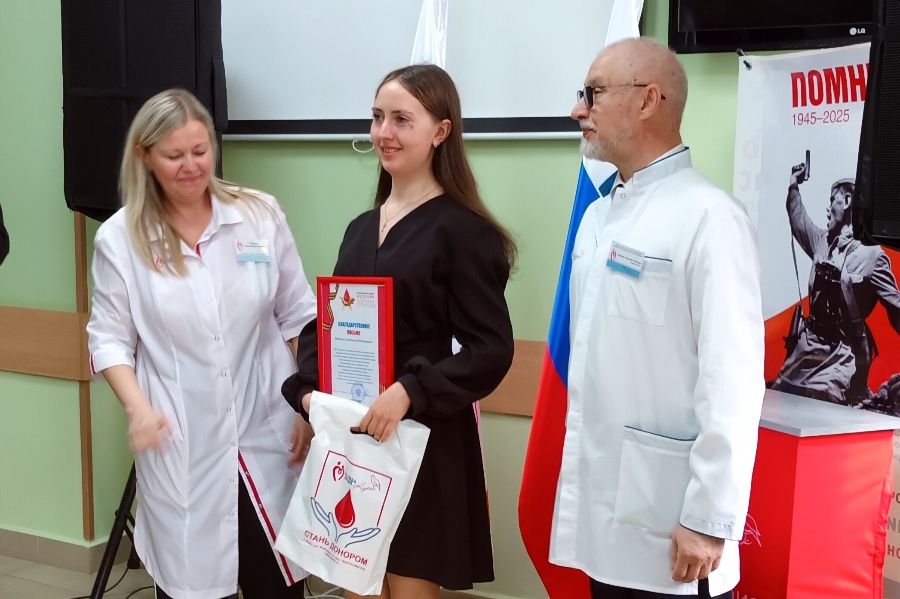 ЖелезногорскНовостиНовости обществаВ Центре крови Курской области чествовали доноров Михайловского ГОКа В Центре крови Курской области чествовали доноров Михайловского ГОКа 18.04.2025 16:15 Общество 608 Фото: Константин Строев 20 апреля в России будет отмечаться Национальный день донора крови. В преддверии этого дня в Центре крови побывали волонтёры, которые внесли неоценимый вклад в развитие донорского движения. Торжественному собранию предшествовала экскурсия по Центру. Гостей познакомили с условиями работы сотрудников, современным оборудованием, логистикой сдачи крови. «Благодаря донорам мы не испытываем дефицита препаратов крови и не испытывали в самые сложные для нашей области времена», – отметила врио министра здравоохранения Курской области Екатерина Письменная. Сегодня в Центре производят 12 компонентов крови. Спасённые жизни в Центре крови измеряют количеством доноров, которых в области 9,5 тыс., количеством донаций, которых ежегодно набирается до 22 тыс., и литрами компонентов крови, направленных в медицинские учреждения. В 2024 году только военные госпитали получили около 1,7 тыс. литров. «Всегда и всё у нас было в наличии, благодаря донорам и организаторам донорского движения. Это ваш тихий, незаметный подвиг. Пациент не знает, чью кровь ему переливают. Контейнер обезличен. Но мы дарим жизнь, и это дорогого стоит», – обратился к гостям главный врач Курского центра крови Алексей Ковалёв. Региональное министерство здравоохранения и Центр переливания крови отметили грамотами и благодарственными письмами директора по социальным вопросам Михайловского ГОКа Бориса Сорокина, руководителя группы социальных программ комбината Дарину Сорокину, Почётного донора России Константина Куликова и волонтёра Анастасию Щедову. Фото: Константин Строев. «Михайловский ГОК, как социально ориентированное предприятие, уделяет большое внимание развитию здравоохранения региона и, в частности, железногорскому филиалу Центра крови. Это и благоустройство территории, и закупка оборудования, и помощь волонтёров при сдаче крови. У нас на комбинате много волонтёров-доноров, которые проявляли инициативу, приходили и спасали жизни. И это не громкие слова, а действительно так», – отметил директор по социальным вопросам Михайловского ГОКа Борис Сорокин. доноры Вернуться к списку новостей Предложить новость