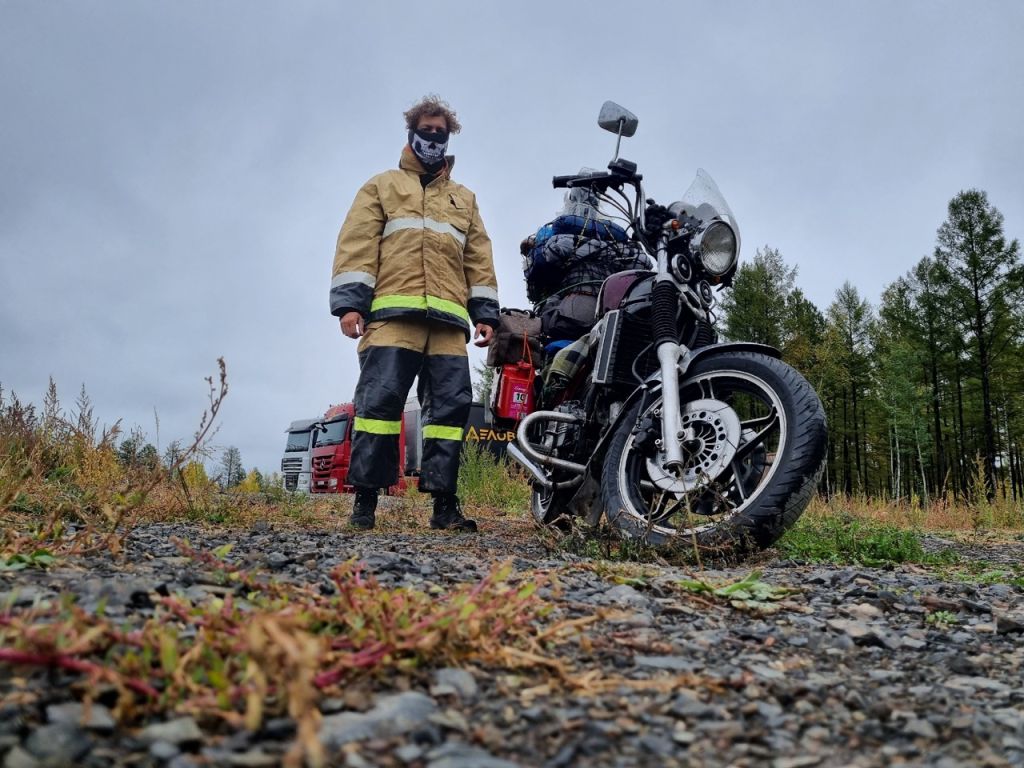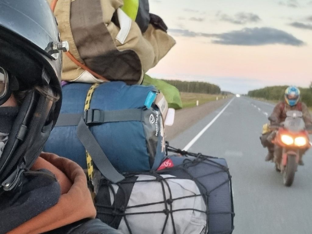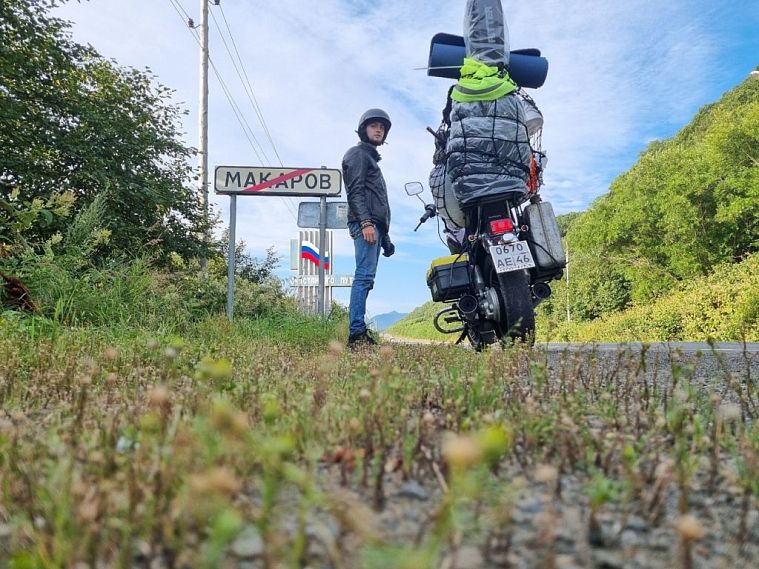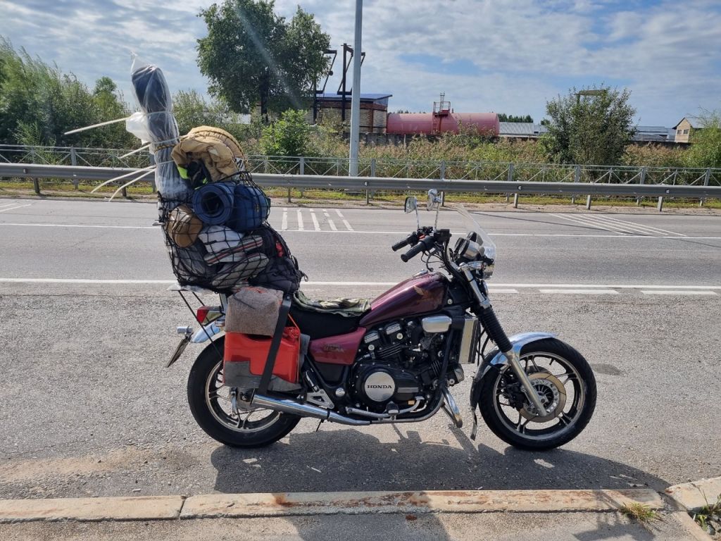 ЖелезногорскНовостиНовостиОт Хабаровска до Железногорска на мотоцикле за две недели От Хабаровска до Железногорска на мотоцикле за две недели Алёна Мяснянкина 11.07.2025 17:01 Туризм 3759 Фото: Сергей Лукьянчиков Наш земляк Сергей Лукьянчиков совершил такой переезд с пятнадцатью остановками в пути. Стечение обстоятельств Железногорец работал электриком в цехе хвостового хозяйства Михайловского ГОКа, когда стечение обстоятельств привело его жить и работать на Дальний Восток. Через четыре года пришло время вернуться домой. Большого багажа вещей он не накопил. Только с купленным японским мотоциклом расстаться было невозможно. Любовь к технике у него с раннего возраста. В 13 лет он уже катался на скутере, позднее сам собрал свой первый мотоцикл из разных деталей и двигателя от «Запорожца». На этой технике, являющейся скорее произведением искусства, покататься правда можно было только по деревенским дорогам, а манили и дальние места. «У меня отец работал дальнобойщиком, и иногда брал меня в поездки. Я всегда мечтал проехать Россию от края до края. И в тот момент подумал, может это судьба совершить задуманное. Может я для этого там и оказался?» Усовершенствованная Хонда вместила нужный багаж Фото: Сергея Лукьянчикова Сам мотоцикл, хоть и имел сороколетний «стаж», особых сомнений в прочности не вызывал. В Макарове ездить особо негде, и прежний владелец, продавший Сергею технику, накатал не больше тысячи километров. Но оставался нюанс, как на бесколясочную Хонду поместить необходимый в таком путешествии багаж. С присущей Сергею изобретательностью, он из арматуры сварил багажник – какой бывает у велосипеда. К этому каркасу прикрутил палатку, спальник, туристический коврик, рюкзак с походными вещами (котелком, горелкой, туркой) и гитару в чехле. С двух сторон привесил ящик с инструментами и двадцатилитровую канистру с бензином – на случай отсутствия заправок (и это пригодилось). «Управление стало несколько хуже, чем до появления багажника, но ненамного. Путешествию это не мешало. По асфальту перевес конструкции вообще был незаметен, только на грунтовке переднее колесо чуть подпрыгивало». На пароме из Холмска уехать не удалось Фото: Сергея Лукьянчикова Сахалин не отпускал Уехать с острова проще всего было на пароме из Холмска, но купленный на грузопассажирский транспорт билет не помог. Именно в тот момент, когда Сергей наметил выезд, 22 августа он сломался и был поставлен на техническое обслуживание. Можно было на грузовом пароме отправить мотоцикл, но как самому попасть на материк ко времени его прибытия. Почти две недели ушло у мужчины на поиск решения. Пытался он пристроить железного друга на почтовый грузовик, а сам вылететь из Сахалина в Хабаровск. Но это оказалось страшно дорого, в три раза дороже, чем добраться самолётом до Москвы. Пришлось лететь сначала во Владивосток, потом ехать поездом и встречать свою Хонду, которую согласился привезти частник. «Казалось, ну вот теперь можно выехать хоть завтра, но нет. Сначала отмыл сильно запылённый в пути байк и поменял его «лысую» резину. Только 5 сентября утром смог выехать». Сдвинувшиеся в осень сроки повлияли на комфортность путешествия, но об этом чуть позже. Хабаровск. Тот самый вид, как на пятитысячной купюре Фото: Сергея Лукьянчикова Брутально-юмористический настрой В первый день м