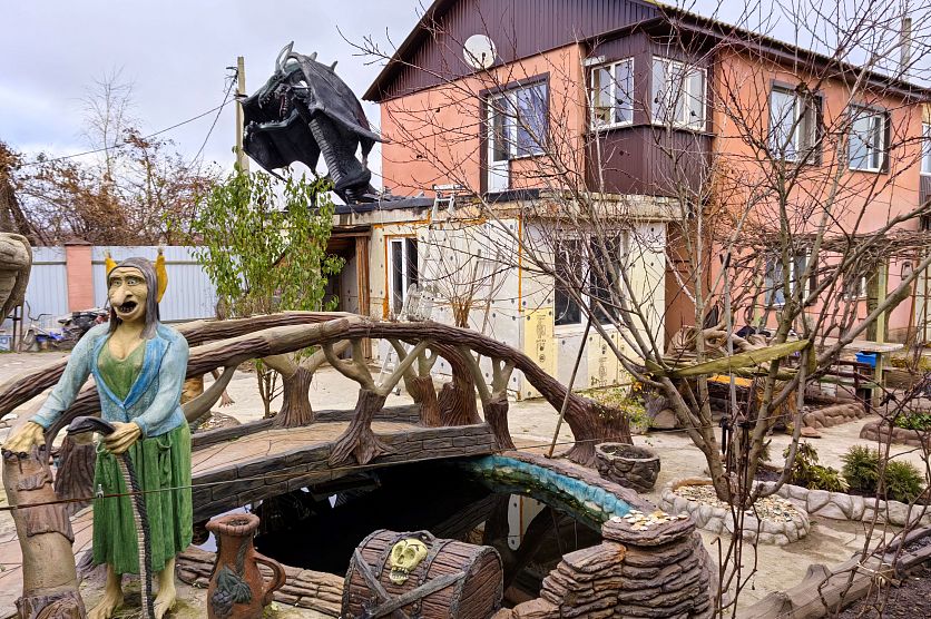 ЖелезногорскНовостиЭто интересноСказочное Железногорье создают супруги Миненковы из арт-бетона Сказочное Железногорье создают супруги Миненковы из арт-бетона Алёна Мяснянкина 21.11.2025 08:41 Это интересно 1902 Фото: Алёны Мяснянкиной Дачный посёлок Михайловский под Железногорском ничем не примечателен. Поля, перелески, дороги, неподалёку промзона. И вдруг посреди однообразного пейзажа… дракон. Пройти мимо такого чуда невозможно, и мы не прошли. Двор за забором оказался волшебным местом. Главное – поверить в себя Началась история с родственников. Два раза в год Игорь и Ирина Миненковы приглашают к себе в гости большой круг родных. Пару лет назад за пасхальным застольем брат хозяйки подворья, приехавший из Щигров, поделился, что у них в городе идёт благоустройство и скоро в сквере появится необычный бетонный арт-объект. «Они все уехали, мы с мужем переглянулись, вышли во двор. Он говорит: «Вот здесь будет озеро, здесь мостик, здесь кикимора. Начинаем!» Как начинаем, с чего?» – с улыбкой передаёт Ирина Владимировна волнительное состояние той определяющей минуты. Первое же дело – копка будущего водоёма – чуть не поломала замыслы, поскольку подкосила больные спины, но не таковы Миненковы, чтобы сдаться. Яму вырыли. Попутно изучили в интернете технологию бетонных изделий. Для каждой фигуры сначала сваривают каркас, обматывают его сеткой, наносят черновой слой бетона, последующие, а после финишного проводят резку по бетону. И это самый важный, трудоёмкий процесс: не навредить, сделать красивое и реалистичное изделие. Фото: Алёны Мяснянкиной. Игорь Юрьевич – сварщик 5 разряда, но помогло ему в новом творчестве другое увлечение: «Я копатель, – сообщает он о раскопках древностей и реставрации монет, икон, крестиков. – Могу часами сидеть за микроскопом. В этом деле малейшее неловкое движение, и предмет можно выбросить. Так и здесь, с бетоном». От простого – к невероятному Про интерес к поиску кладов намекает пиратский сундук у рукотворного озера, вокруг которого расположились разные персонажи. Но первой пробой объёмных изделий Миненковых стал декоративный пень с лесовиком, сделанный по образцу сохранившейся советской подставки для карандашей, потом супруги создали декоративные кашпо и деревья и, наконец, приступили к женским фигурам Русалки и Кикиморы. Последняя интересна натуральностью облика: складочки на юбке, оттопыренные кармашки. Фото: Алёны Мяснянкиной «Это было настоящее платье с этикеткой, засунули его в раствор и надели на неё. Кофточку ей нашли. Теперь она настоящая дама!» – смеётся Ирина. Чем дальше, тем смелее становились замыслы. Так появился над озером мост. Удивление вызывает умение Игоря рассчитать вес и нагрузку мощных конструкций, не обладая архитектурным образованием. «Генетическая память, наверное», – говорит он об этом, считая, что в каждом из нас эти знания есть, просто открываются они тем, кто хочет. Так самостоятельно рассчитал он усиление и прочность моста, а потом на глаз прикинул, как именно нужно поднять пятитонную фигуру дракона Тамары на крышу пристройки дома. И помог советом крановщику, который уже хотел было отказаться от задачи. Фото: Алёны Мяснянкиной Имя у дракона появилось само, говорит супруга: «Работал муж над ним целыми днями с весны до осени. Приговаривал: «Мы с Тамарой ходим парой». Так и стали н