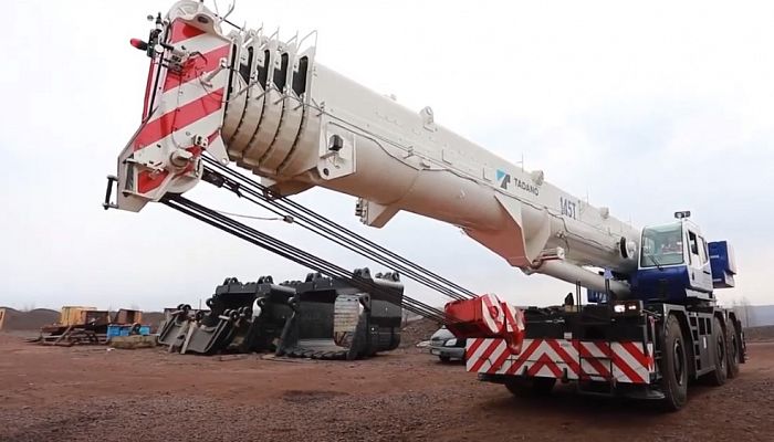 ЖелезногорскТВ и изданияНаше ТВНовый 145 тонный кран на МГОКе Новый 145 тонный кран на МГОКе 17.04.2020 14:49 Наше ТВ Редакция портала 774 0 На Михайловском ГОКе приступил к работе новый универсальный автокран грузоподъемностью 145 тонн производства японской компании «TADANO». Габариты машины впечатляют. Ее высота и ширина больше трех метров, длина - свыше шестнадцати! Телескопическая стрела может выдвигаться на 61 метр. С установкой дополнительного оборудования до 78-ми! Возможность вращения стрелы на 360 градусов, изменение угла наклона кабины делают кран «TADANO» незаменимым помощником почти во всех подразделениях Михайловского ГОКа. И в карьере при ремонте экскаваторов или укладке железнодорожных путей выручит. И строительство капитальных объектов комбината ему по силам. Игорь Гранкин, механик автоколонны №4 управления грузопассажирских перевозок АО «Михайловский ГОК»: «У нас будет запускаться крутонаклонный конвейер. Там важна длина стрелы. И подать груз на большое расстояние. Это возможно по его эксплуатационным характеристикам. Ну и также всевозможные производственные задачи комбината». Эффективнее работу машиниста делает микропроцессорный блок, выводящий на экран сведения о длине и вылете стрелы, массе и высоте подъема груза. А блок телеметрической памяти собирает и хранит информацию обо всех параметрах машины. На кране установлено множество приборов, повышающих безопасность проведения работ. К примеру, анемометр, измеряющий силу ветра, подаст сигнал к прекращению работ, если она окажется выше 14 м/с. Управлять новобранцем доверили Андрею Злобину. И сегодня перед машинистом поставлена ответственная задача - переместить многотонные детали 25 кубового экскаватора. Это тот случай, когда монтаж карьерного исполина не обойдется без автокрана-тяжеловеса. Алексей Строев: «Прямо сейчас два крана, один их которых 145 «TADANO», участвуют в поднятии рукояти ковша весом почти сорок тонн. Здесь от операторов машин требуется слаженность. Внимательность и еще раз внимательность». На Михайловском ГОКе машинистом автомобильного крана Андрей Злобин трудится восьмой год. В профессии 15 лет… Дело свое любит и знает. Андрей Злобин, машинист автомобильного крана управления грузопассажирских перевозок АО «Михайловский ГОК»: «У всех есть какая-то мечта. Мне хотелось работать на машине большой грузоподъемности. Краны большой грузоподъемности очень тяжелые, у них длинные стрелы. То есть любую операцию нужно выполнять очень плавно. Все рычажками плавно, аккуратно. Вообще наша профессия не терпит спешки». Отзывы горняков свидетельствуют - компания «Металлоинвест» приобретает для своих предприятий производительную технику, отвечающую требованиям российских и международных стандартов. Отличные технические характеристики автокрана и мастерство машинистов и водителей помогут управлению грузопассажирских перевозок и их коллегам из других подразделений Михайловского ГОКа в выполнении производственных задач. Наше ТВ
